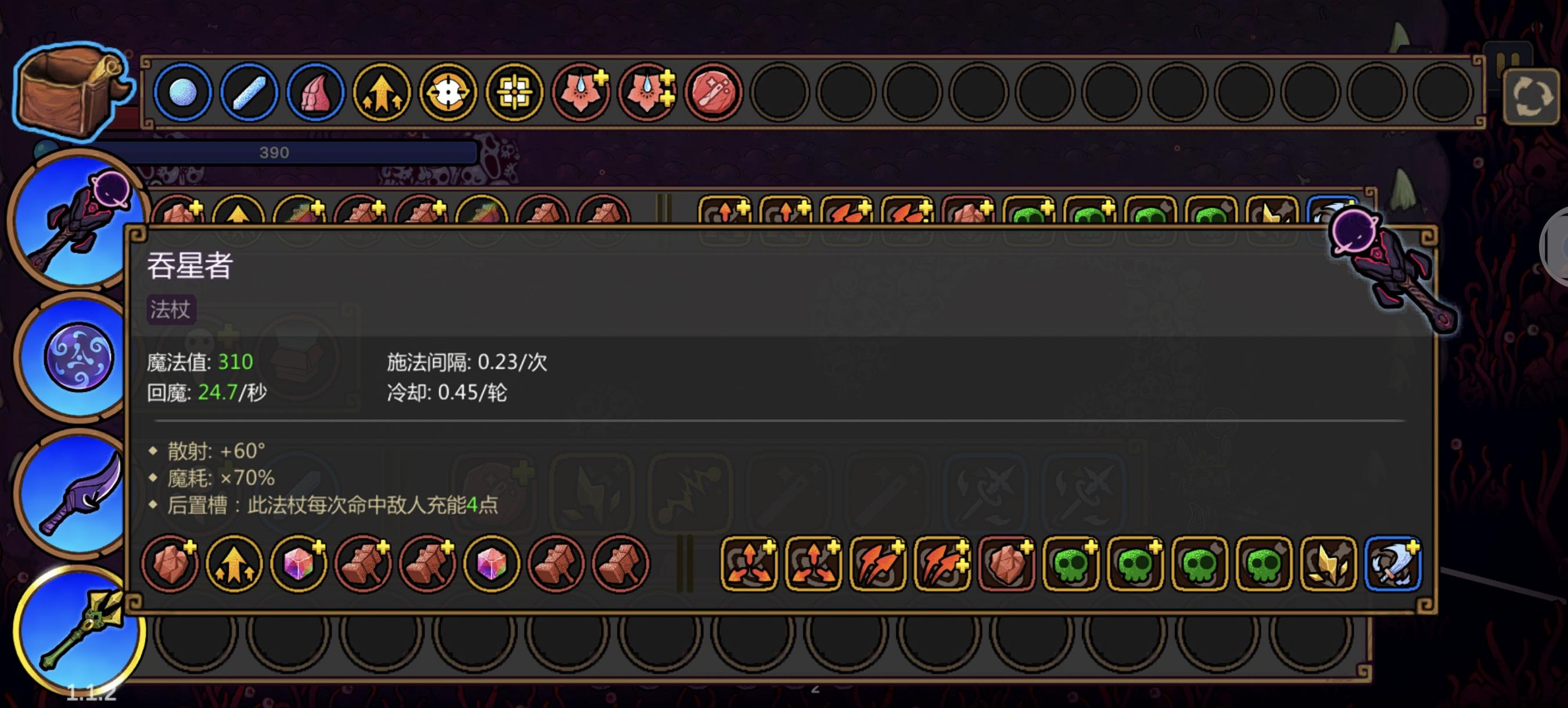 攻击充能搭配锤子还是太超模了法杖推荐带有攻击充能,例如777,吞星者锤子无论是是在主动还是被动都能吃到双重和分裂效果,一个锤子当六个用,后面随便挂一个伤害高的法术,一下攻击不用点几秒钟秒boss