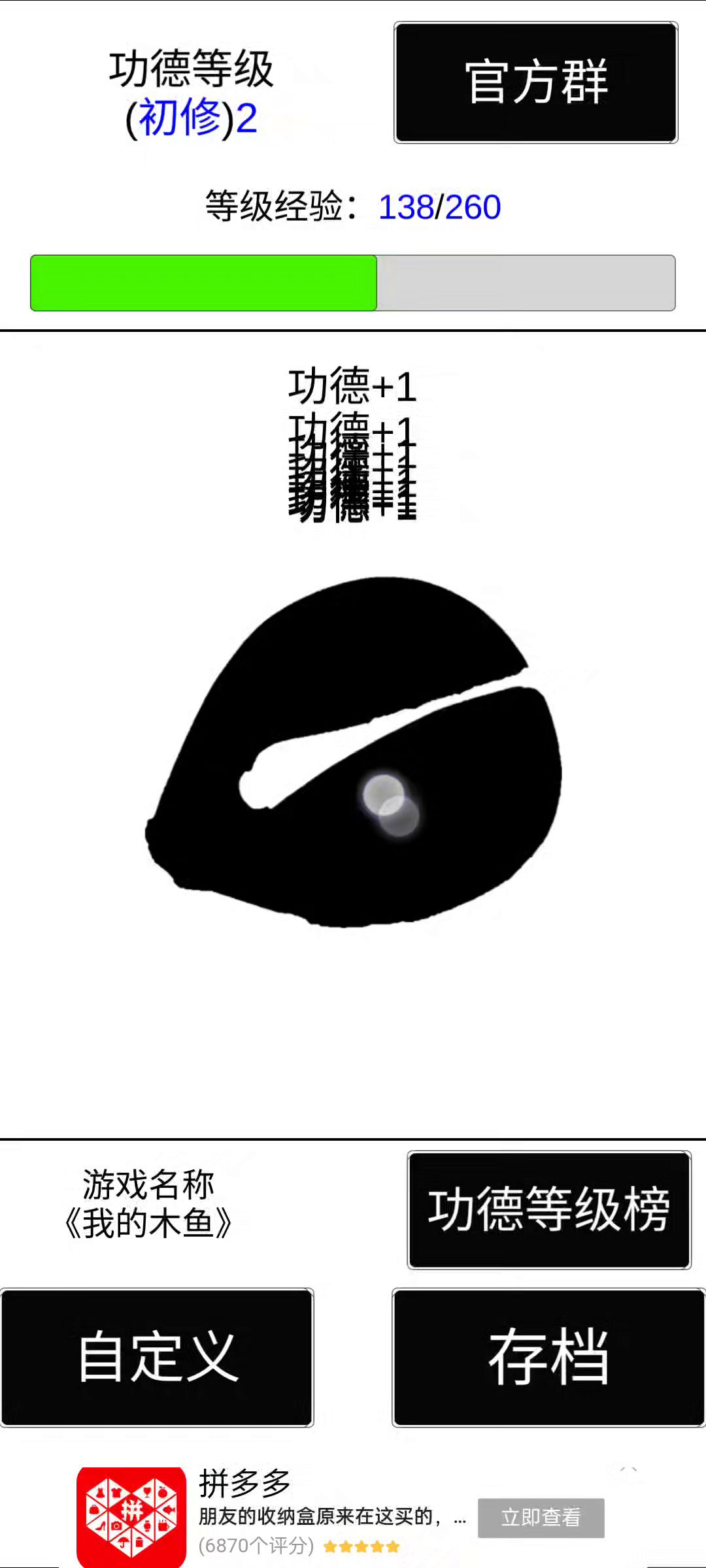 坦诚的说,这是一款看起来相当新鲜,但着实廉价到骨子里的游戏,下载它的玩家恐怕也只是出于一时的好奇。但也就是这样一款游戏确实满足了玩家内心的某种奇怪情结,敲木鱼是一个非常机械的运动,却可以实打实的为全世界的顶流大V佛祖打赏功德。何乐而不为呢?信仰很昂贵,但在互联网时代,电子盘串都成了可能,我在手机上敲敲木鱼,随时随地攒功德又有何不可?