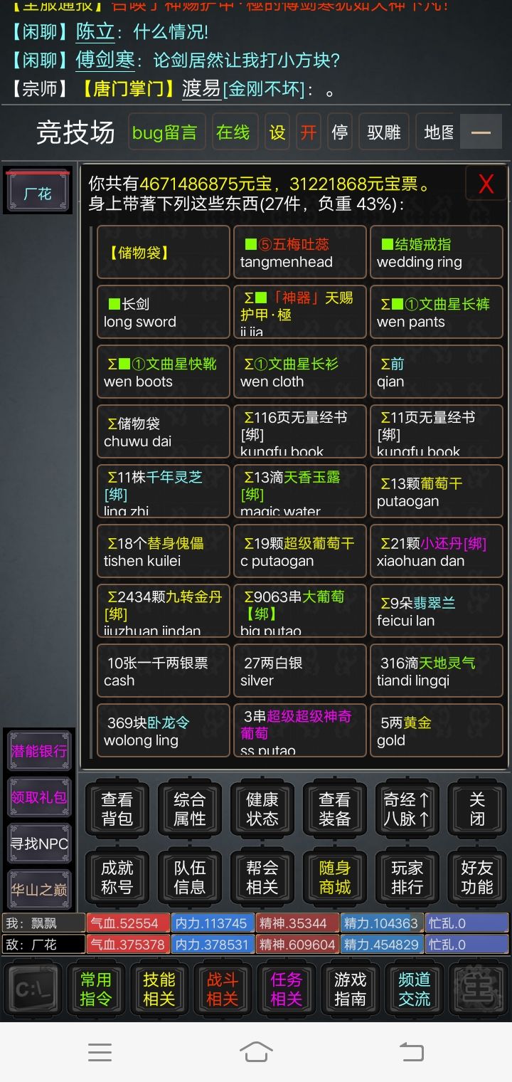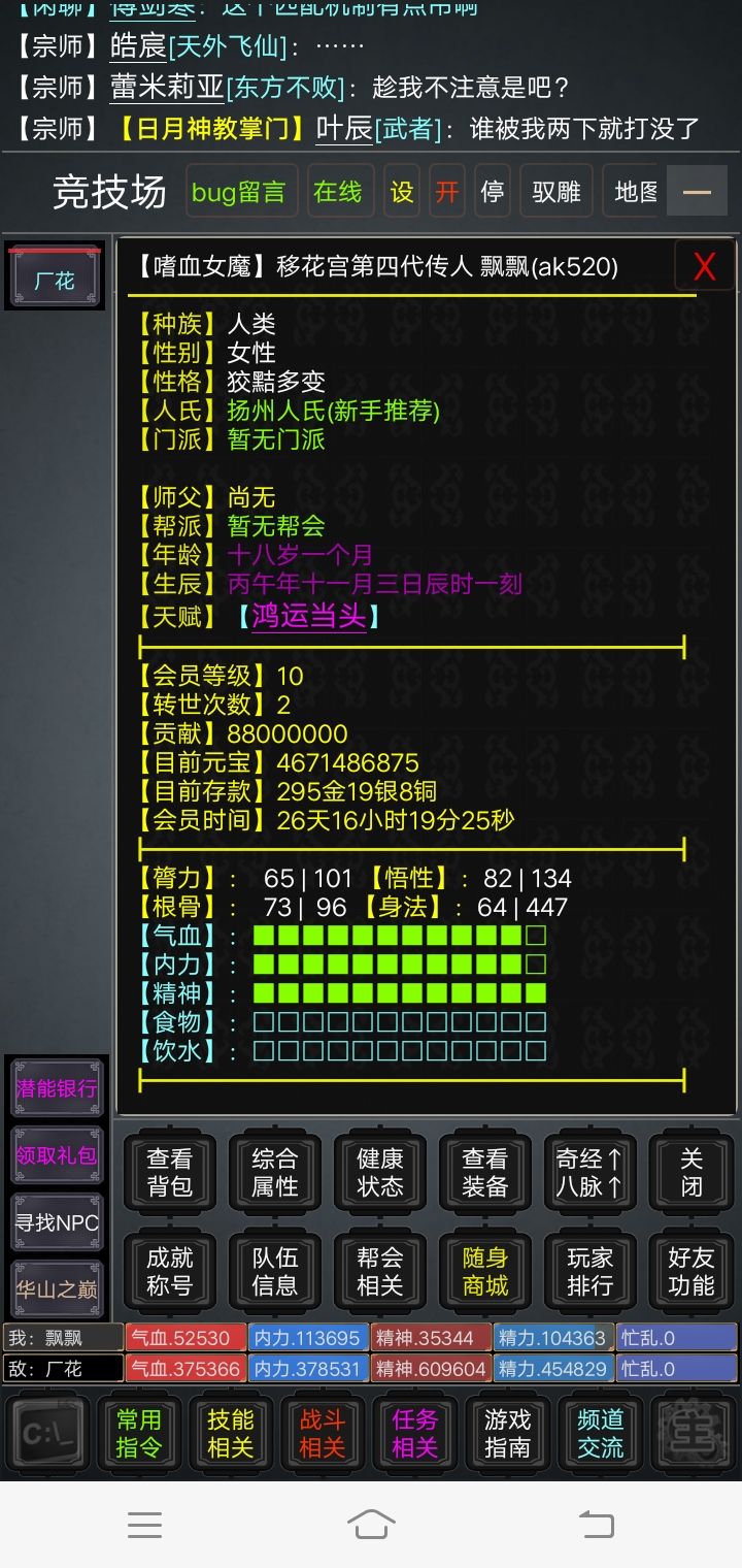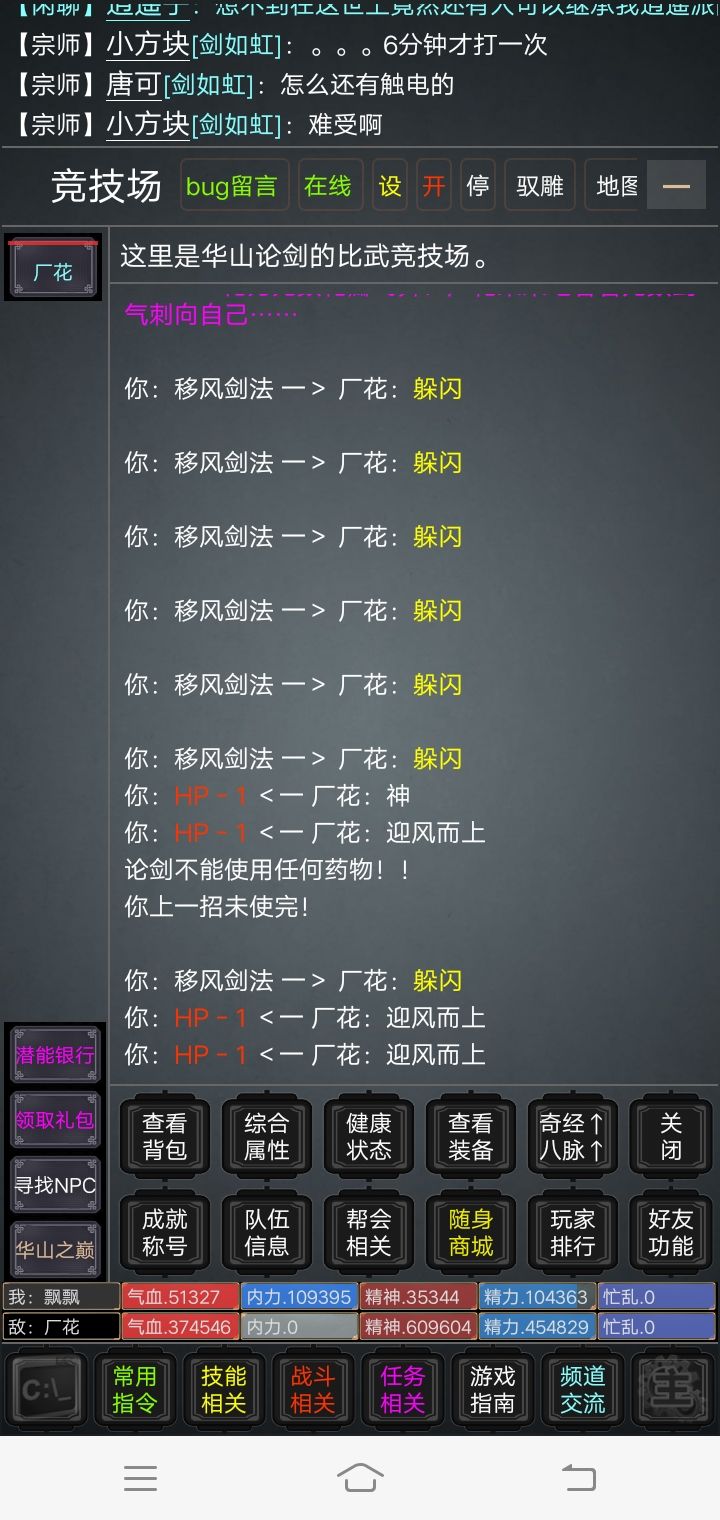 玩游戏第三天,论剑了,大佬不放技能,我打不中,无语。。。