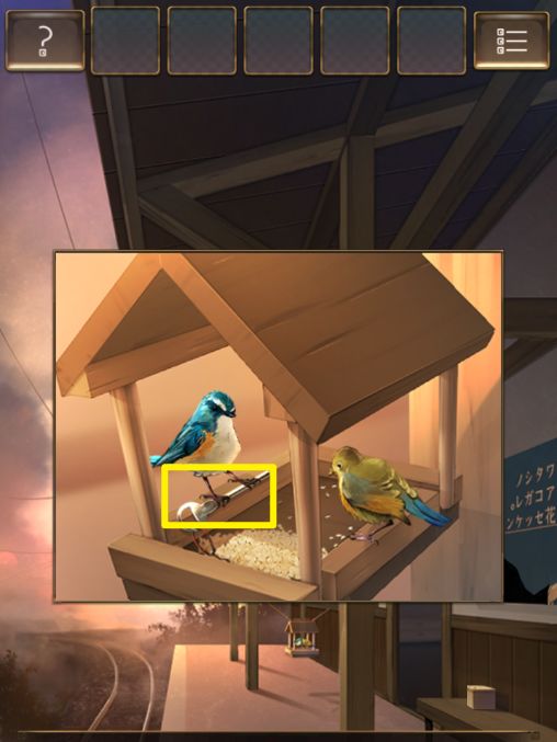 攻略作者:迷失攻略组-longma 未经许可,禁止转载,侵权必究! 第七关 57.后面柜子右抽屉中获得【鸟食】。57 58.向左来到候车室外,将【鸟食】放在过道前方鸟笼中,小鸟来后获得【旧钥匙】。58 58.1 59.点击右边椅子上的盒子,获得【杯子】。59 60.查看右边墙壁上的字。60 61.返回候车室,使用【旧钥匙】打开柜子,获得【工具箱】【杯子】。61 62.查看物品栏中的【杯子】,点击一