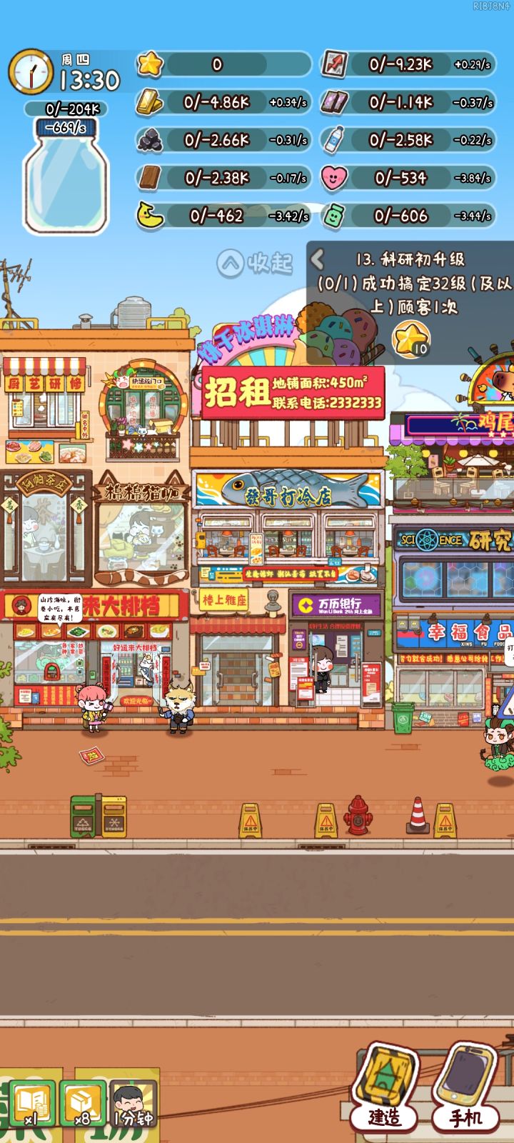 街道格子非常不合理,后期剩一个大楼完全没空间放,店铺也没那么多随便放点绿化或者别的设施就把格子占满了,促销充气筒居然还要跟本来就放不下的设施牌子抢格子。不放吧,仓库一直显示红点,完全消不掉。只能说作者是懂劝退红点强迫症的,突出一个折磨。