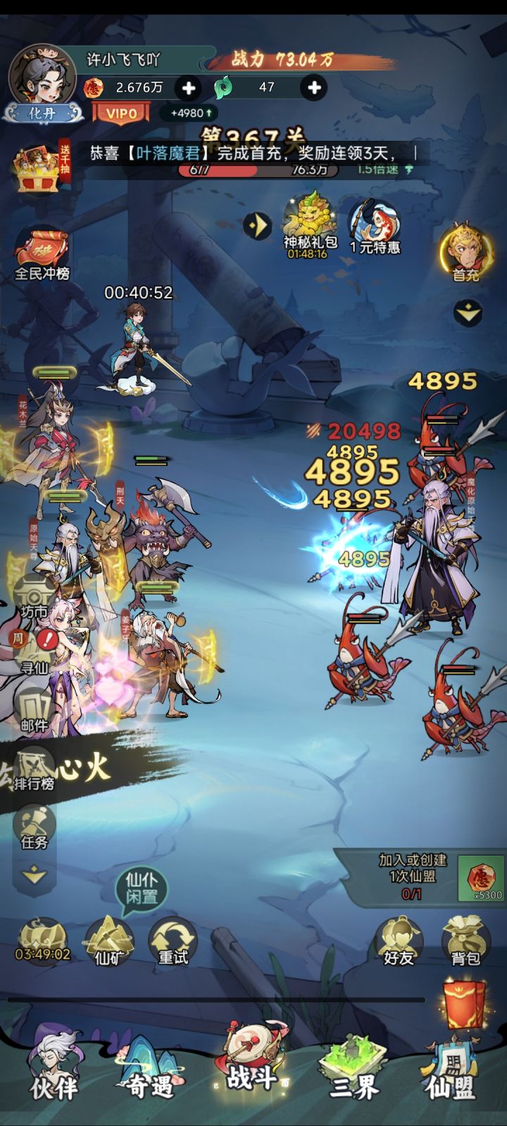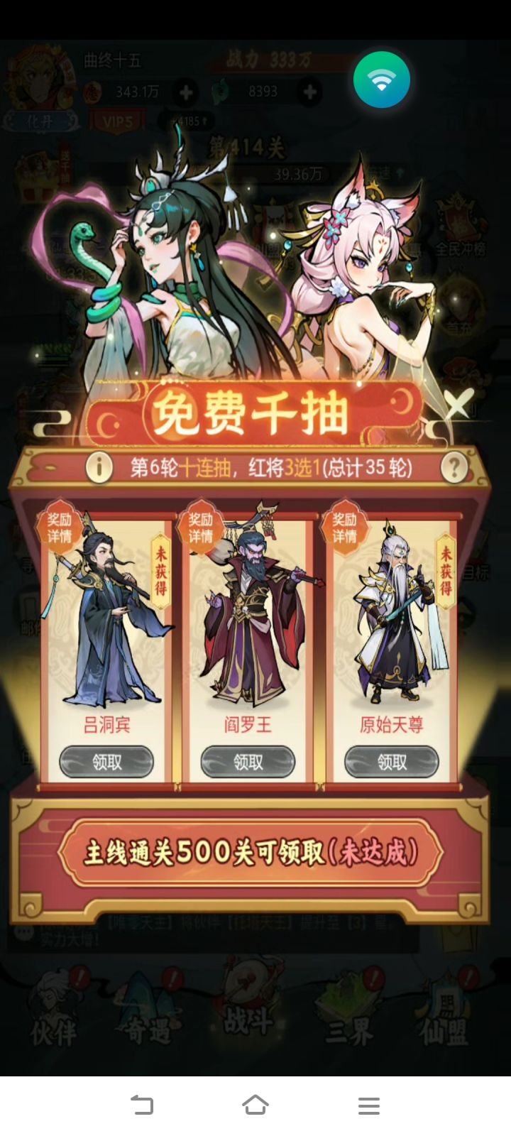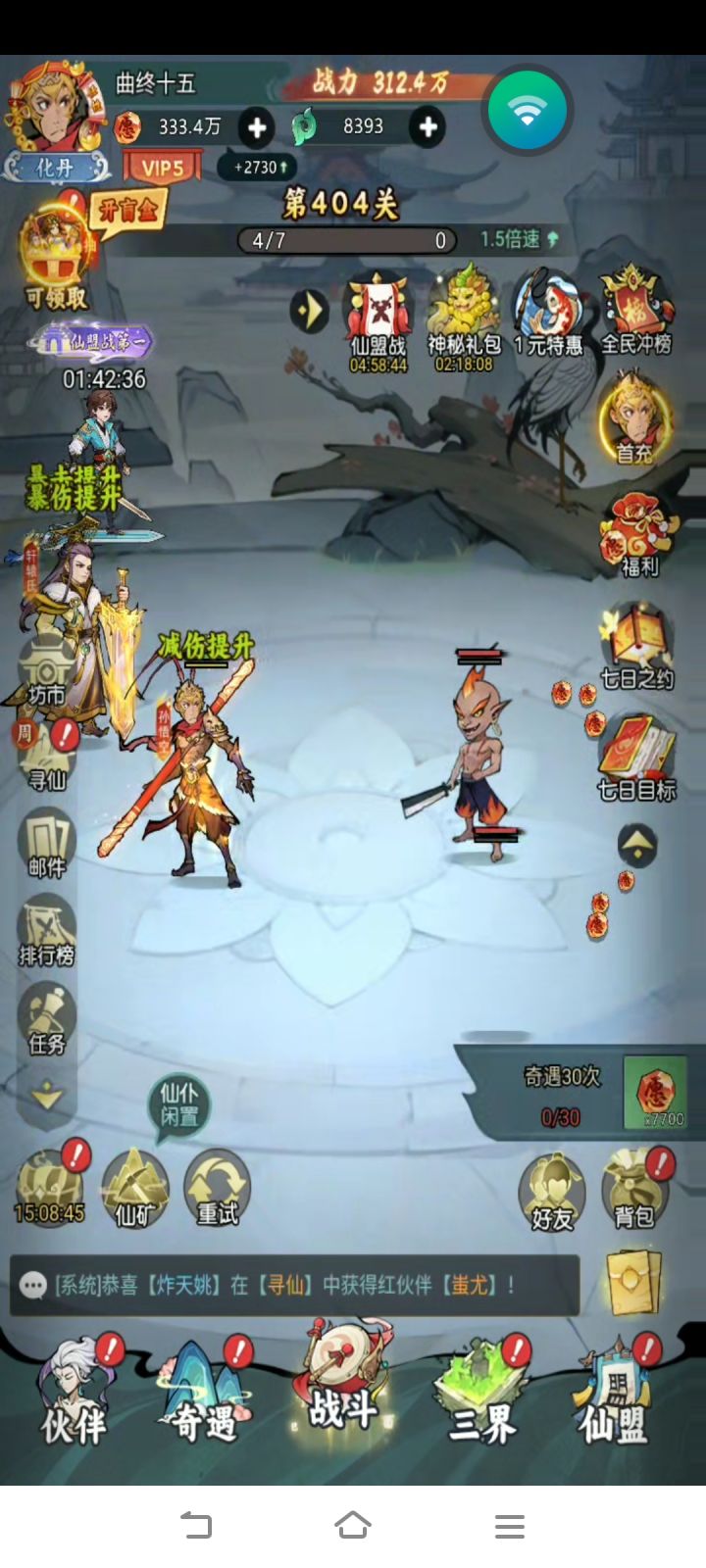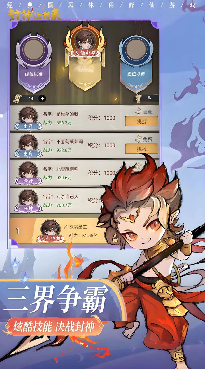 #发现好游戏 一款仙魔类的休闲放置挂机游戏。游戏中,访道寻仙,排兵布阵,多人仙战,挑战不周山,多样玩法。 前期推荐新手整容; 孙悟空为核心阵容 成员:孙悟空、女娲、轩辕、夸父、妲己 特点: * 孙悟空作为输出核心,拥有极高的爆发力和攻击力。 *女娲主坦,减伤叠攻能抗能打 * 轩辕提供buff增幅,增强队伍整体实力。 * 夸父和妲带有格挡灼烧效果己确保队伍的稳定输出。简单的操作方法、