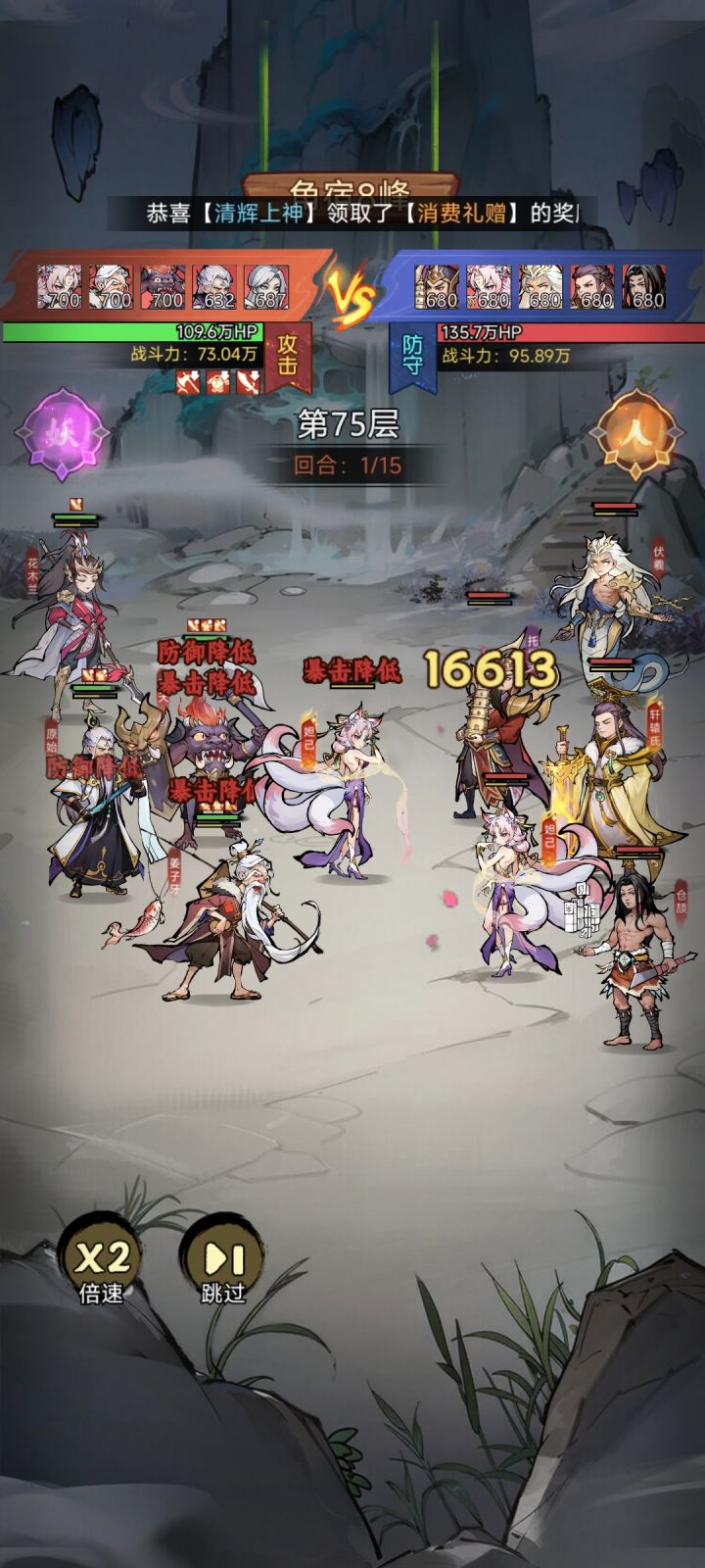 73万战力,能打到75层95万的,已经很不错了后排从上到下花木兰元始天尊妲己 前排刑天姜子牙
