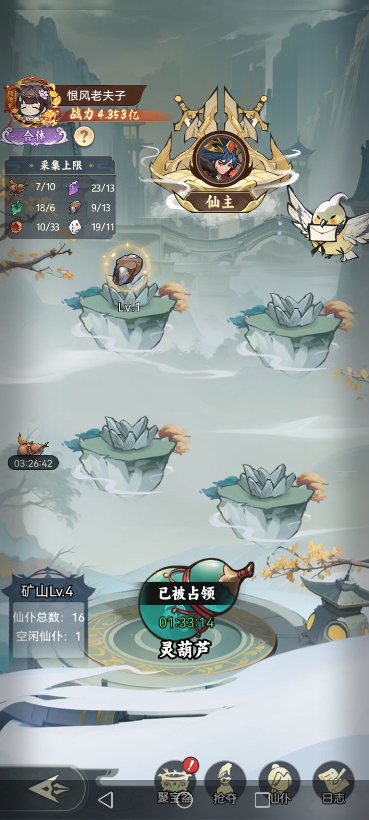 时间的游戏这样的游戏有很多,来了就安心,慢慢来,慢慢熬,不能急,急了就废了,活动都是循环的,开局7天能完成的一定要完成,如果完成不了就存下来,等下次,或者下一次,矿是平民玩家最重要的选择,不是看看我的,仙玉第一选择,筛子第二,现在缺雷击石,先三级仙玉,到第五个到手的时候,剩下全部去拿仙玉,一气呵成,这次我自己没注意,一个仙玉时间刚好到,害的我后面本来还能多5次机会的,自己毁了,也无所谓了,他只能