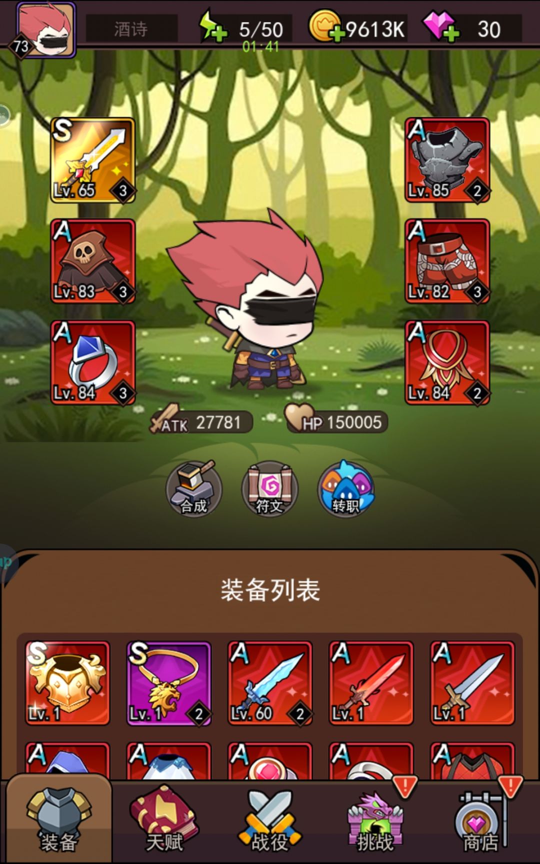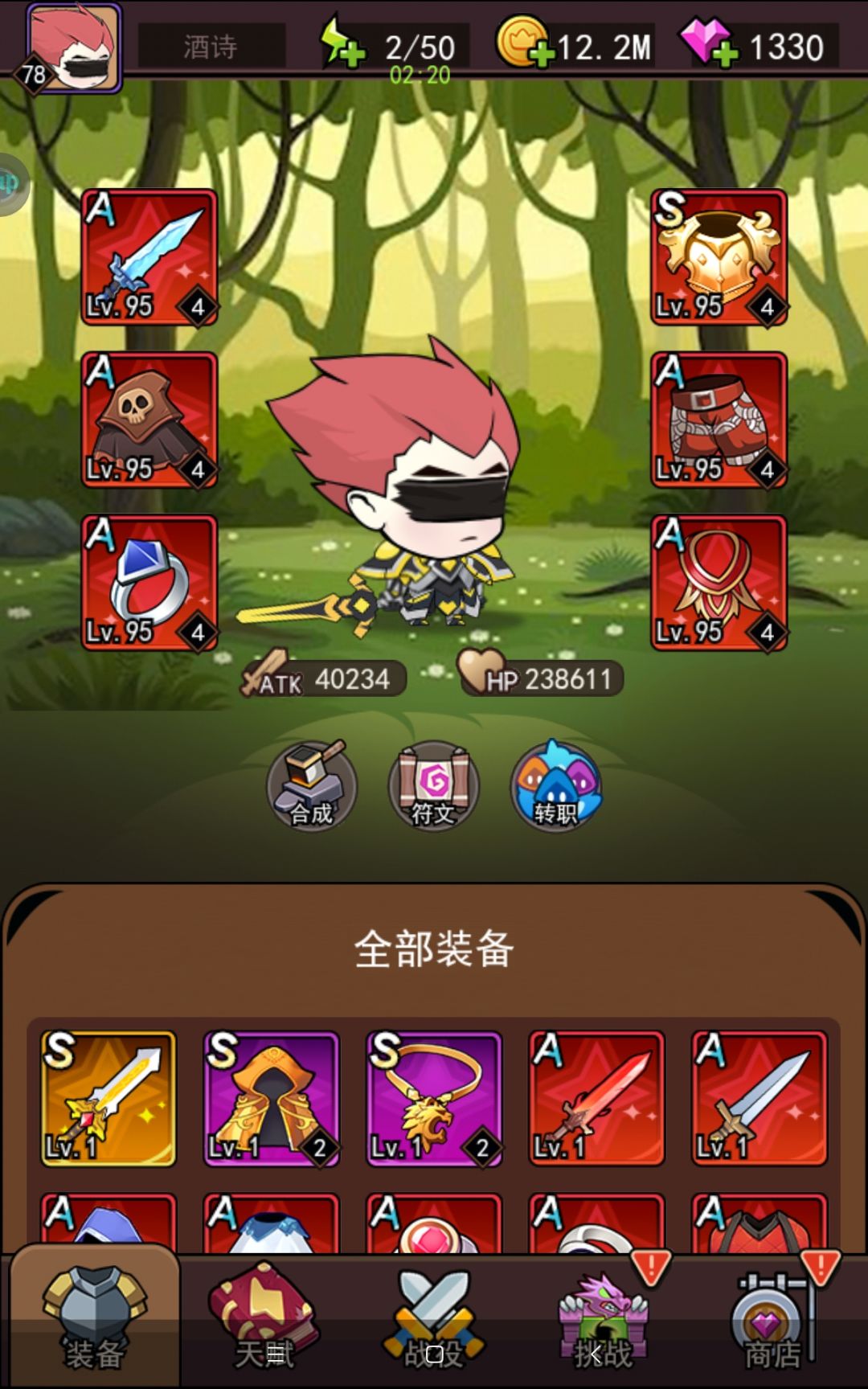 运气不错第六天到37关,第七天一路顺风用闪避雷电流直接干到47关。主要是开s宝箱合成了橙色s剑,你的恐惧都是来自火力不足。已经没体力了不然还能继续打,还有1小时七天乐就结束了,想了想发个帖记录一下吧,各位仅供参考。 1,前期5关前尽量搞到蓝色防回血披风,不然很难继续。 2,21关开装备幻化功能,就是给你个加属性的皮肤,3000钻一件,可用21关后特殊掉落材料升级,前期提升较大,建议15关前钻石可以