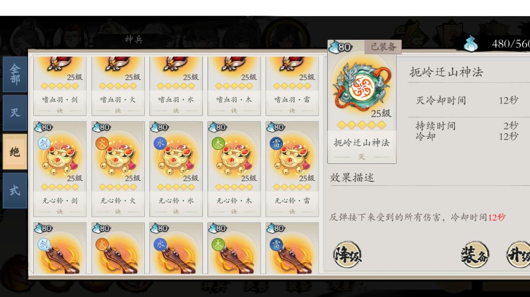 全神兵集齐开贴 话不多说,下面分为打关卡和妖兽挑战两部分放搭配(本人打无尽只打14分钟,所以不放无尽搭配) ①打关卡 ②妖兽挑战(不给铜币,所以不带加钱的) 如果是玩雨字诀爆发一波流,噬魂式可以换启翔式,开局能量直接是满的。 宗门神兵太难搞了,所以这里只推荐能抽出来的器系神兵。 真想玩宗门神兵先换对应的无心铃吧,性价比最高。 还有宗门灭神兵目前就水宗的葫芦有用。其他别换,拉胯。#攻略#宝藏厂商#游戏攻略