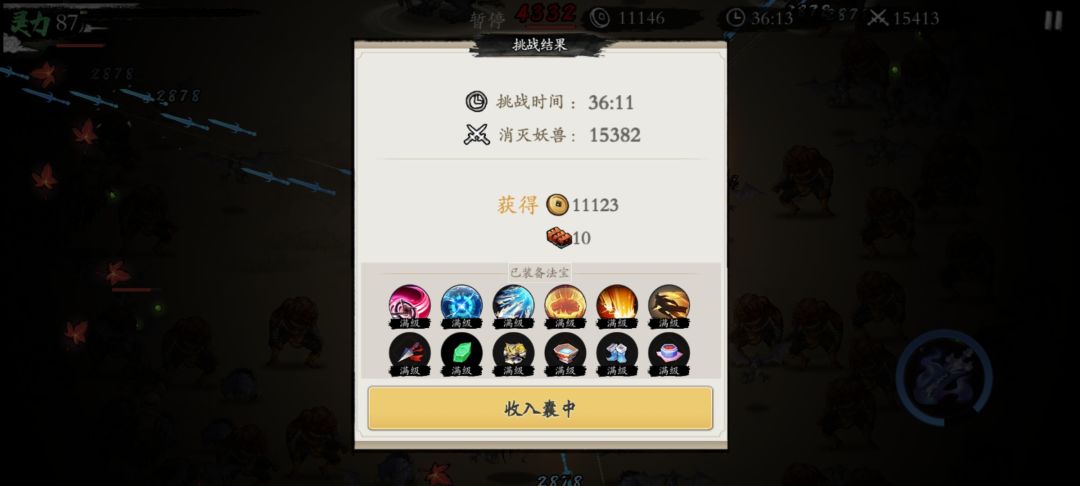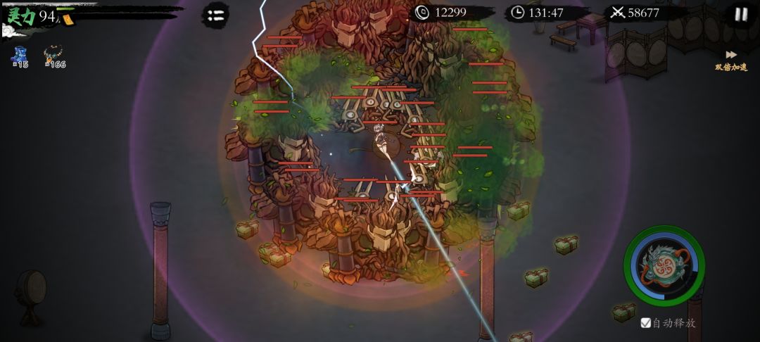 先上战绩: 元婴六、两件紫装、观星满,苟活36分钟 谈谈方法: 人物 : 老头,这个不用多讲,想要在25分钟后的怪海中活下来,依仗的就是老头无与伦比的回血效率。 神兵 : 说实话神兵在整个游戏里都没什么存在感,前期用不上,后期不管用。当然皇金式的加钱还是很给力的(就是真TM难抽啊)。所以个人倾向于多搞点伤害,毕竟在后期蚊子再小也是肉。 装备 : 绿衣服应该是最好的选择了,毕竟紫装就能满血复活一次,