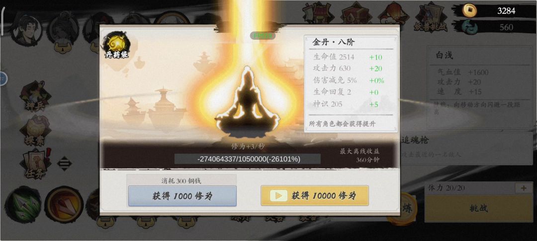 这个游戏真是,好的地方特别喜欢,有些玩法跟鬼谷八荒挺像,一直想玩来着,但是该改进的地方太多了,无尽塔上传不了,有些法宝升满级就直接变成PPT游戏,几帧啊,搞什么啊,怎么玩?搞得很难受,好不容易合成,结果PPT。点了广告,下载了,这都没什么,安装包在哪删?然后这个修炼也太慢了,几十万一级突然就变千万一级,这么抽象??搞什么???加点故事啊,或者其他功能,或者自己设计打造自己专属的本命法宝啥的,会有趣