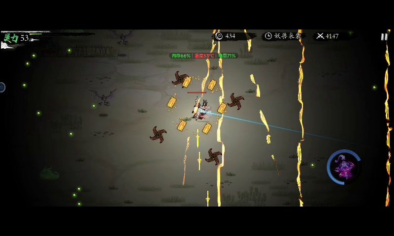 开局先把所有的礼包码换了,此时差不多有五万铜钱。然后推到第四关拿宠物,再看几个给铜钱的广告,凑够6w拿老头,观星首点朱雀里的开图鉴,然后你就可以愉快挂机了。 法宝首选涌炎术,乌金镖,乾坤符这类后期全图或保护的技能。这把是我边做饭边打的,全局基本没怎么动。