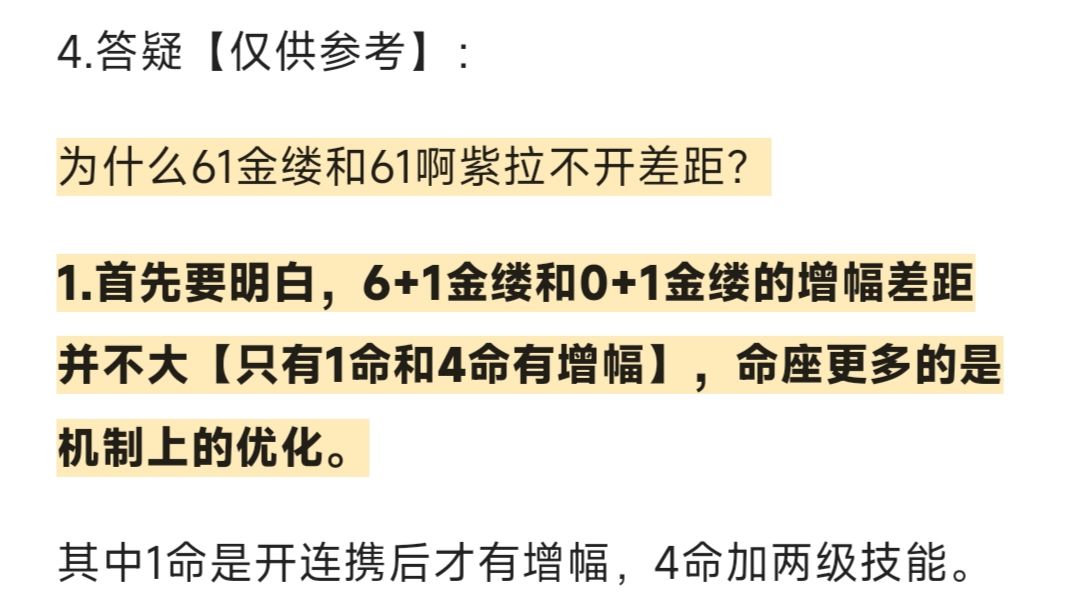金缕强过头了,平a都能打出4种伤害,说不定更多,别的排列组合没试,反正也没啥用,11切22切应该是最大了 小技巧是金缕1/2技能收束前切人 小技巧增伤明显,但拉满也就151%,四命乘10%,166% 顺便提一下,金缕没带古痕,不知道金2怎么回事,不过平a都能吃金2,没古痕也不重要了