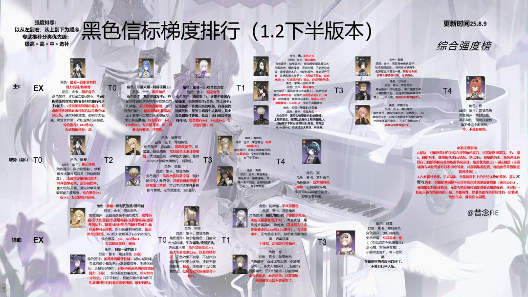 调整了梯度整体合理性,新增角色金缕,😅没啥话说了,这期榜更完,以后应该不定期更新了🤓🤓🤓,新角色毋庸置疑的强,数值阴的没边的,当然也是继铂鸢之后的bug大王,导致强度异常怪异。以后就养老了,希望还剩下的社区大佬能继续优质创作,而不是制造垃圾攻略。 哈哈,最后吐槽一下传奇卡池,哥们快5w的钻,抽金缕开始歪两次萝歌丝,我就知道要开始了,触发保底后满减20到30抽就出,然后又开始保底出金缕😅,后面整出5