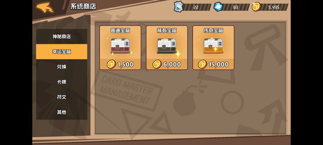 现在刚开始最缺的就是钻石,还有水晶。很多人拿着金币去换幸运宝箱,然而现在游戏还没完善,里面开出来的东西基本上对当前没有作用。 现在水晶的出处只有主线剧情跟神秘商店。但是钻石不一样,我们可以拿金币去换钻石。钻石可以配合水晶解锁、升级角色,最最重要是可以买卡牌。 我们可以拿金币换钻石宝箱性价比也是最高的。里面可随机开出1~100个钻石。我比较黑,开了40多个箱子最高只开出了五个钻石,不知道有没有幸运儿