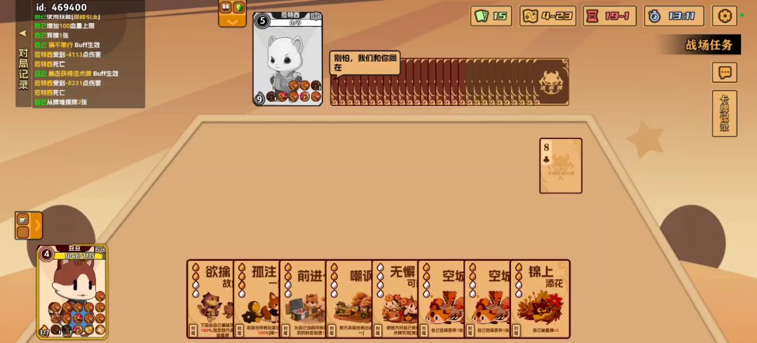 听说继往开来复制有BUG?还是我牌太多了卡了,才玩二三把就遇到了,而且好像还和对面天赋产生了奇怪的联动效果还打赢了(敌方有牌必出)结果对面出啥我都能自动接我人懵了[表情_震惊]