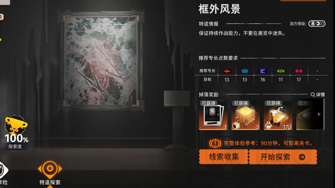 发现公测好像没人水这个攻略了我先水(不是 全藏品按探索流程标的,有些重打小技巧可以看三测写的那版,这版那么写字数不够用() 提示:进门前建议看看这个属性条,不够的凑一凑以防检定失败高血压 提示2:藏品序号似乎很混乱,好几个版本,建议直接参考名字,如果初见还怕麻烦建议全程跟随该流程,因为某些地方会随剧情推进锁门()似乎是卑鄙的双结局,不过好像不影响奖励,但影响成就章,建议有需求的规划一下() 21