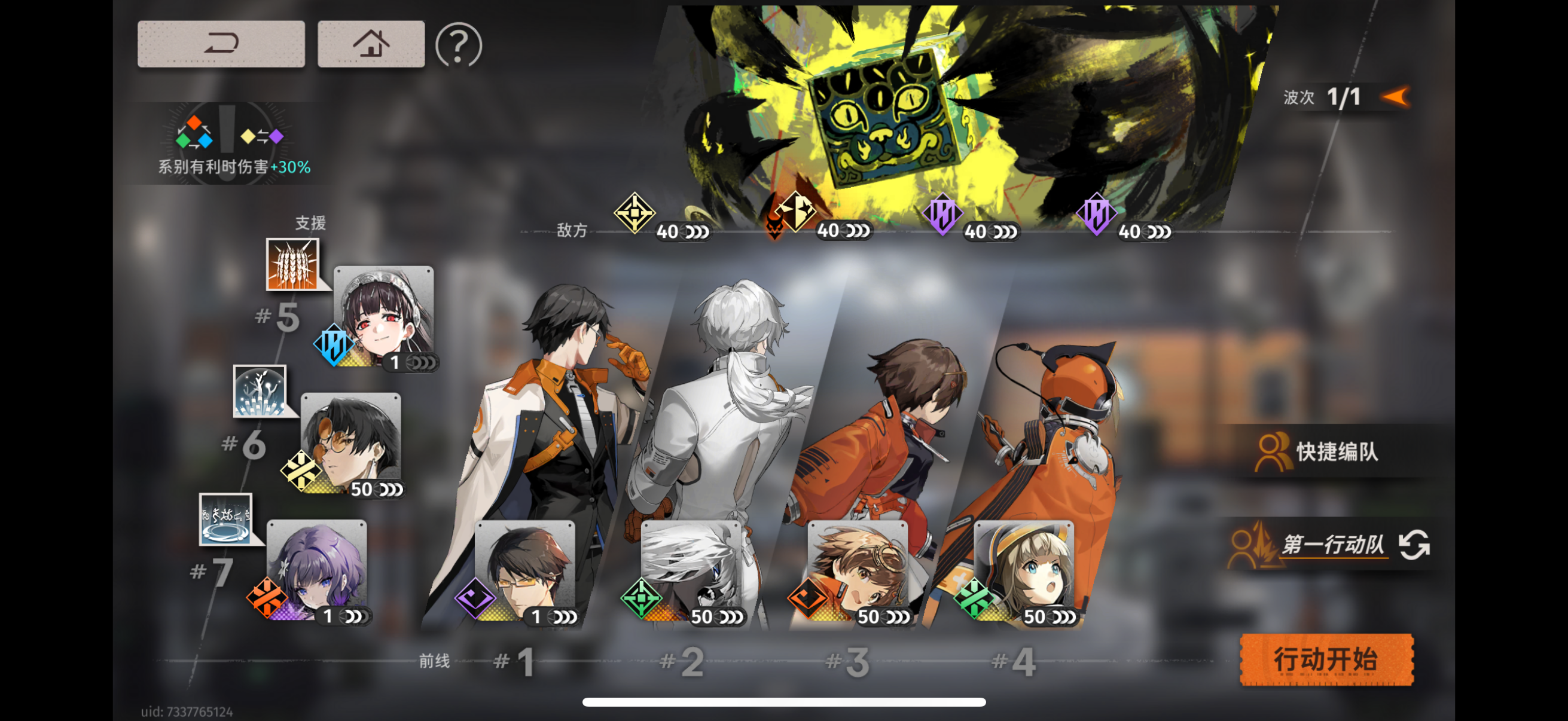一号位:骐骥,弥沙等有控制的(骐骥一直平Aboss就行)。等级要拉到高级认证一级就OK了,卡带我带的是一级的2+2都是加生命的,因为boss可能会放群体技能,所以要保证有一定的血量。骐骥一直平a可以让boss后面完全召唤不出小怪,可以随意输出,但打到后面回合如果中了毒一回合大概要掉七百到九百的血,所以要注意好控好血量。 二号位:任意输出。我的是2命净天,带的红月,能减少奶妈压力。 三号位:任意输出