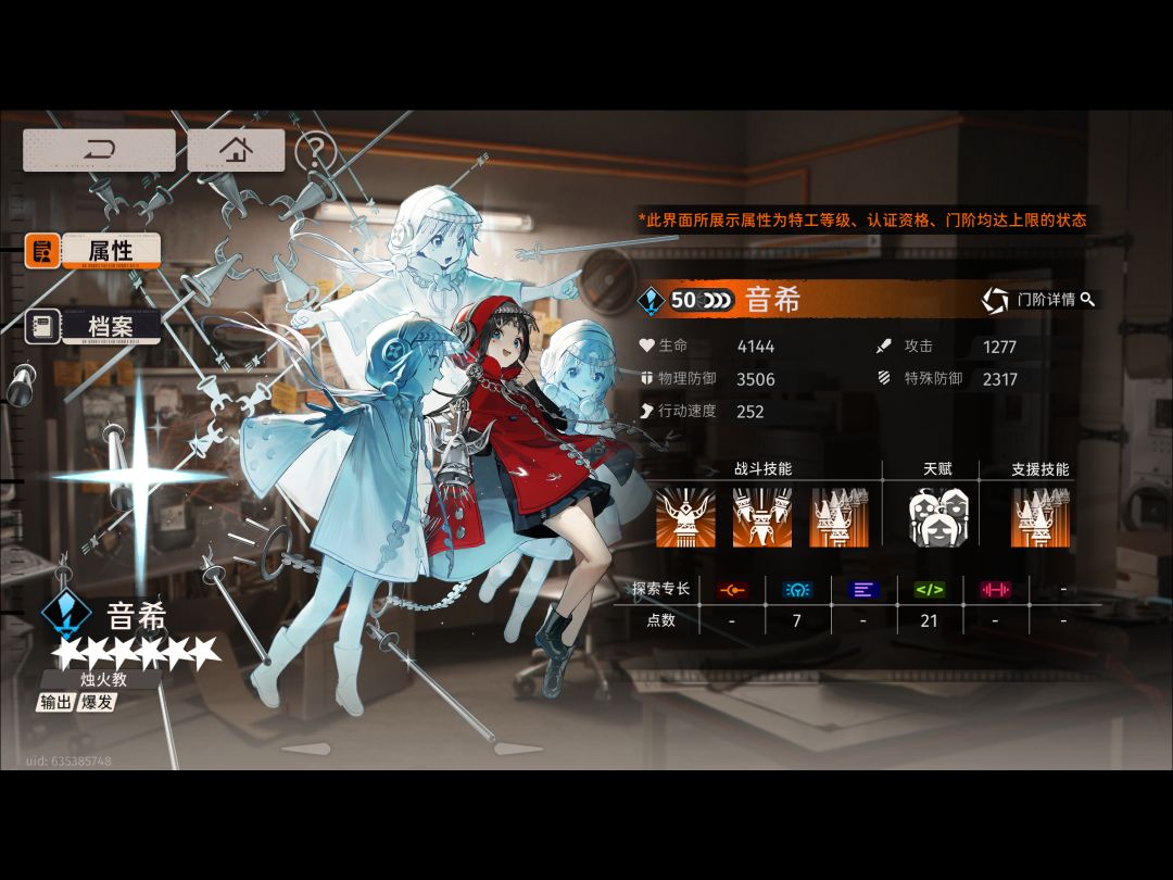 新月全6星详解(音希篇) 信性强攻角色,被动:造成克制伤害时增加暴击和10%伤害。不被克制时获得10%减伤。普攻倍率较低,暴击时获得5能级。战术技倍率同样很低。获得3回合增加10%暴击的buff。比较实用。大招是音希的核心技能,消耗所有能级,消耗越多伤害越高。多段伤害,每次暴击都会增加爆伤,倘若全部暴击则拥有全新月最高的倍率。暴击后有10%的吸血。1重门额外提升大招暴击爆伤。 音希作为典型的后期大