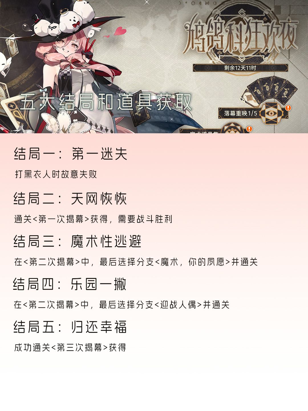 #新月同行禅世遗香 #游戏种草计划 #新月同行 #新月同行攻略 Tada~这里是小丸! <巧手>卡池的新活动来啦! 赶紧整理了新活动『鸠鸽科狂欢夜』的全结局收录攻略, 6个道具的获取方式也一并附上,全收集党赶紧冲! 希望可以帮到大家,组长们快来抄作业,搬空奖励吧! —————— ฅ՞• •՞ฅ ——————— 🔘制作不易,严禁任何商业性转载及搬运,转载需标注攻略出处喔 🔘制作难免会有错漏,希望大