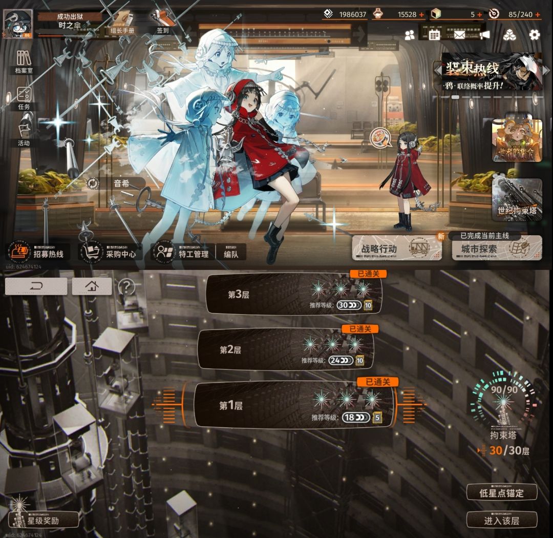 *碎碎念+一些爬主塔思路 ps:新来的组长们就别看了,这次活动对于新玩家并不友好。。尽力而为就好了 *先说一下本人是佛系全勤玩家,养成也是属于随便养养的类型,角色养的不是特别好,词条也是随便刷的那种 *这次爬塔拿的主要角色(都是满级+满级卡带)有: *碎银子(0门)+梧桐(0门)+阿莱夫(0门),我没有六星盾金桂和巫,拿五星的甘霖(5门),有些关卡需要上银峰(5门),然后弥砂(5门)逃课用的,20