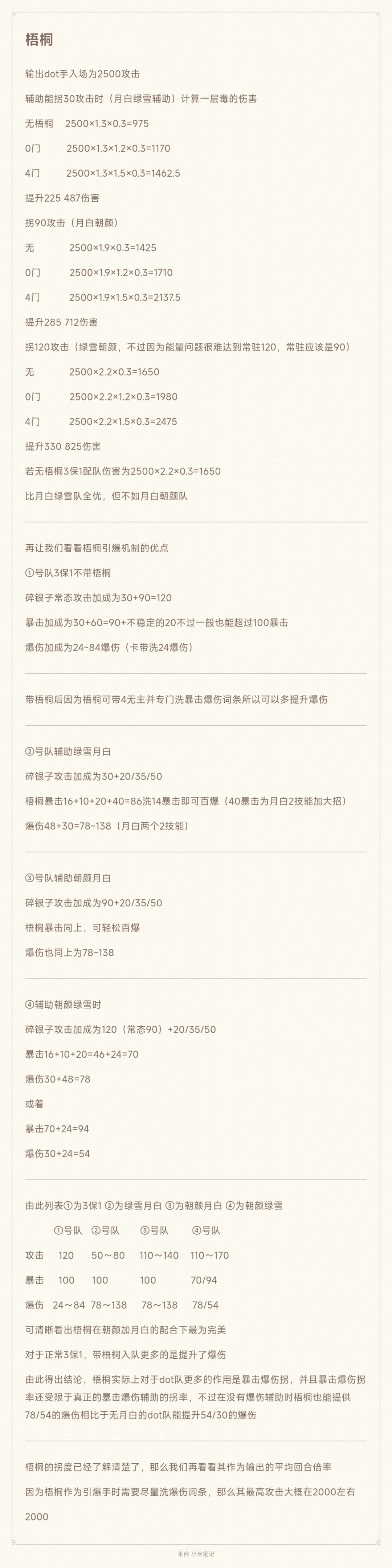 图1省流:梧桐实际为dot队的暴击爆伤拐,并且辅助的dot c满足“每回合上毒数”ד每层毒持续回合数”>20最好,且梧桐的爆伤拐率会有一部分取决于队内的爆伤拐 图2,3是梧桐碎银子队的引爆收益,最下面有总结 最后附我对于梧桐这位引爆手的理解,在没有碎银子的情况下不推荐新手抽取,下个dot c遥遥无期且不一定在梧桐优势区间,而梧桐0门单走又并不强势(梧桐单走0门1门差距不大),在梧桐优势区间的队伍