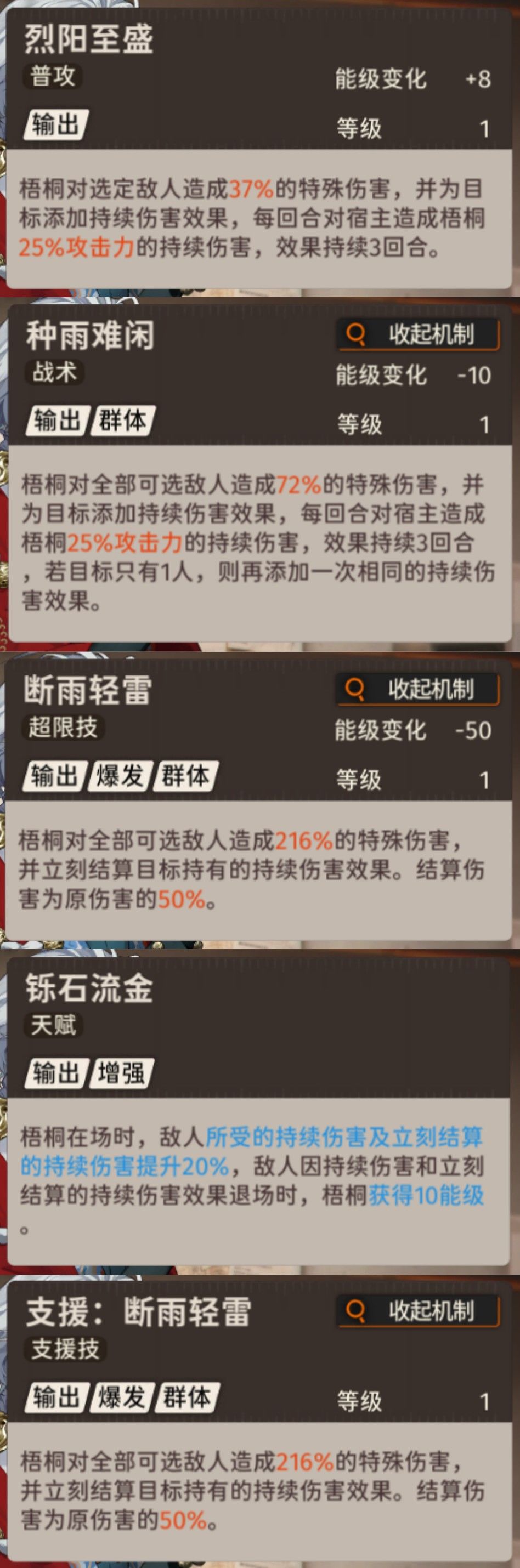 梧桐技能门阶一览