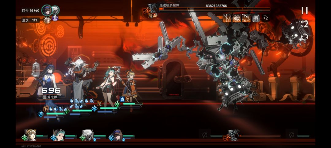 小怪第一层这么放,洞明甲醛随意一个,朝颜给净天和刺灰上buff(谁锈蚀多给谁上)净天一直人形态打盾怪,刺灰一直a盾怪,锈蚀层数叠起来了就放aoe清锈蚀,刷满锈蚀存好起码三格支援进boss关。然后就靠弥神逃课了[表情_吃瓜]