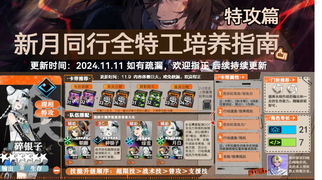 #新月同行创作征集令 新月同行6分钟超长攻略 一篇文章带你从新手到毕业 角色强度榜单 卡池规则 抽卡建议 阵容搭配 站位 主流英雄卡带推荐 门阶 氪金攻略 新手注意事项 萌新避坑 新手池 定向 龙井 净天 朝颜 音希 白月 商店兑换优先级 特工强度 新月同行手游攻略教程 游戏