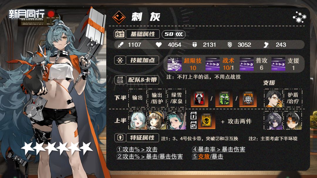 #新月同行创作征集令 新月同行落地的新角色刺灰,是一名有这超高爆发能力的群体输出角色,特有的追击能力,让刺灰在多波次对群环境中有着可怕的压制力,被动的增伤让她越打越强,同时战术技也补足了群攻角色对单攻击的短板,角色环境适应性很强,可以说非常值得抽取。 那么刺灰如何配装?门阶需不需要抽取?队友应该如何选着呢,以上问题,本期攻略全部给解决。 先看看刺灰技能详解,由于刺灰最核心的是天赋技能,因此这次