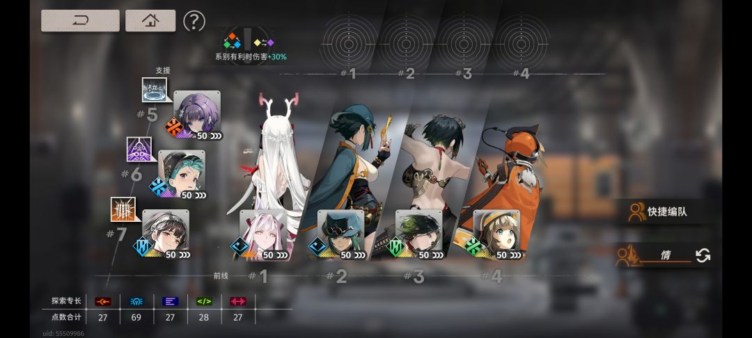 注:点开图片就会变清晰,图片预览不行,要点进去看 龙井队: 核心就是龙井,龙井有溅射伤害效果,前期用来推图清怪方便 红袍可以降低敌人的物抗,其次红袍中级认证后,天赋可以给到全联堂阵营的角色攻击力加成,龙井是可以吃到这个攻击力加成的。 银峰自保抗伤能力强,没有的话可以用其他的替换。 辅助最好用朝颜,因为龙井和朝颜都属于“信”系,朝颜的天赋能给到“信”系角色的攻击防御加成。 支援角色: 骐骥的支援技能
