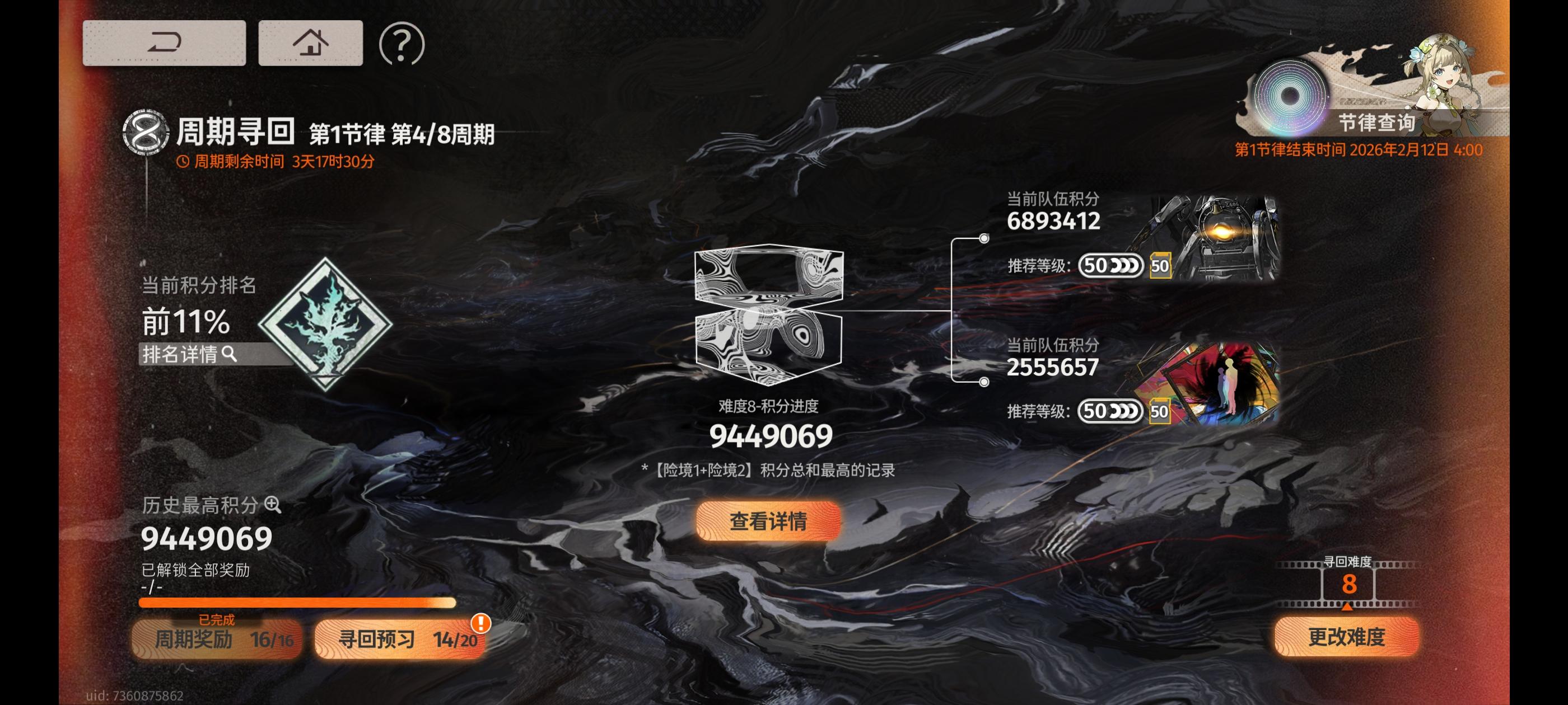 后面还是缺能量很容易直接断层了,刷下卡的话,感觉还能再长一点现在还是后悔没抽曙光了,龙井的负面buff上的太少了,一拳最高也就只能170万,有曙光的话,能上200万,然后就是下半场感觉根本凹不动,要不是因为这个,我就进1%了,还有最重要的黑卒,你怎么还不来?下半场是真扛不住了希望下一期对我好一点吧