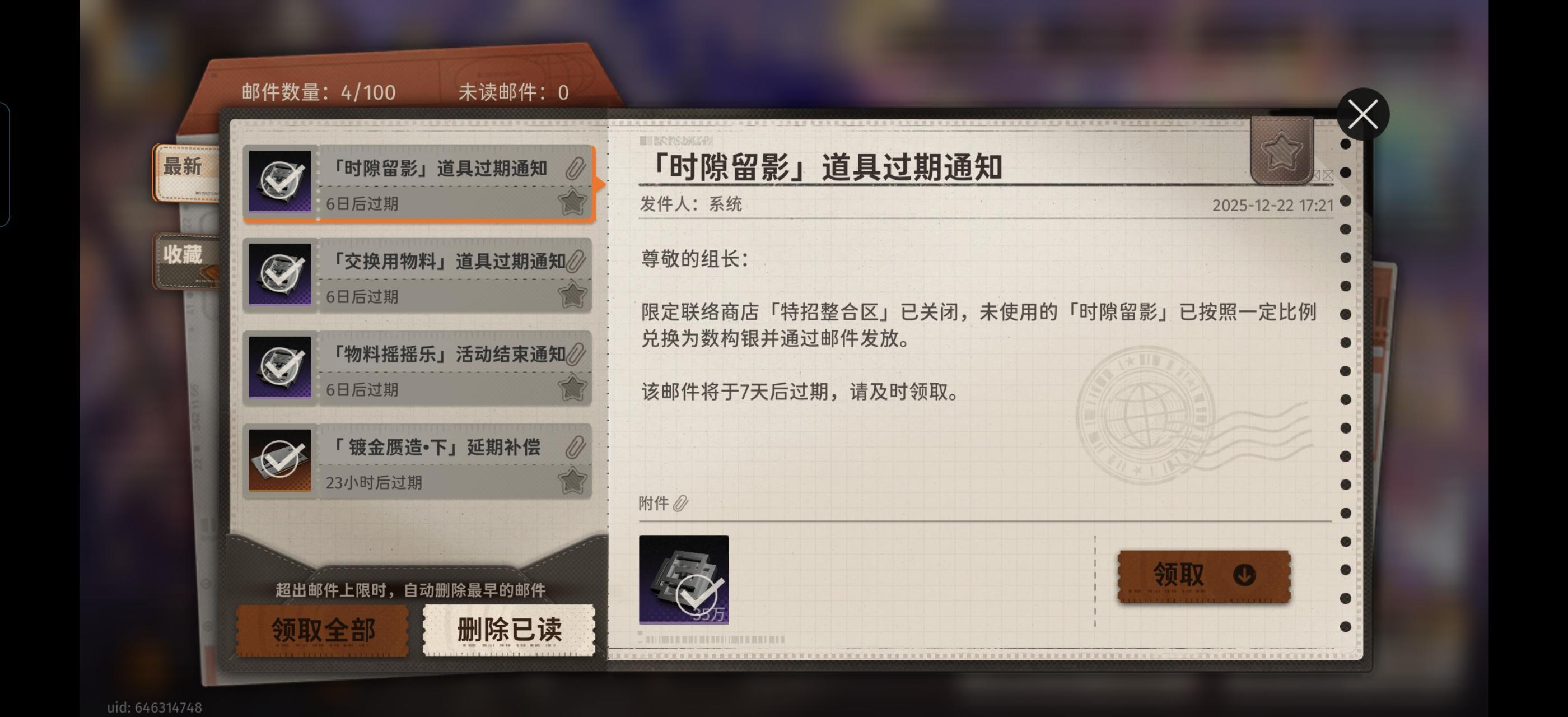 为啥我上号回来看看你 结果停服邮件未收到,都没有看见,有知道解决办法的友友嘛?我真的哭死