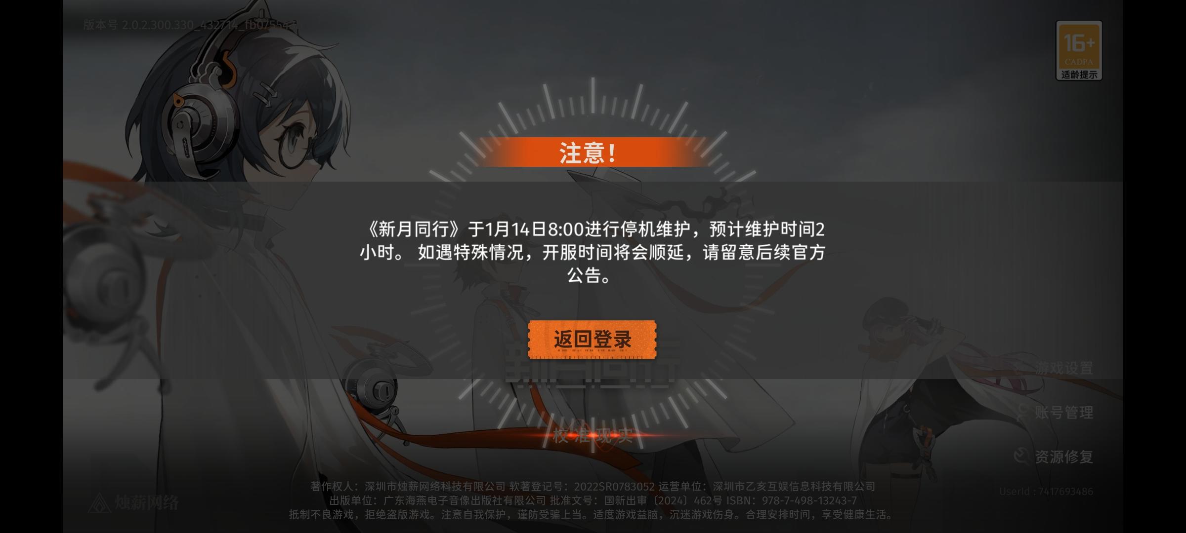 立项四年,仅运营一年短寿二游官宣落幕《新月同行》官方公布了退款方案。官方宣布从2025年12月31日12点起,开启游戏内退款通道,符合条件的玩家可以在2026年1月31日12点前,申请现金退款或兑换周边。官方在公告中向玩家道歉并“感谢陪伴”。标志着这款运营了417天的国产二次元手游正式结束。立项四年:错失风口的粤式怪谈黑马 游戏在2020年立项,开发商烛薪网络想做一款结合岭南文化和新