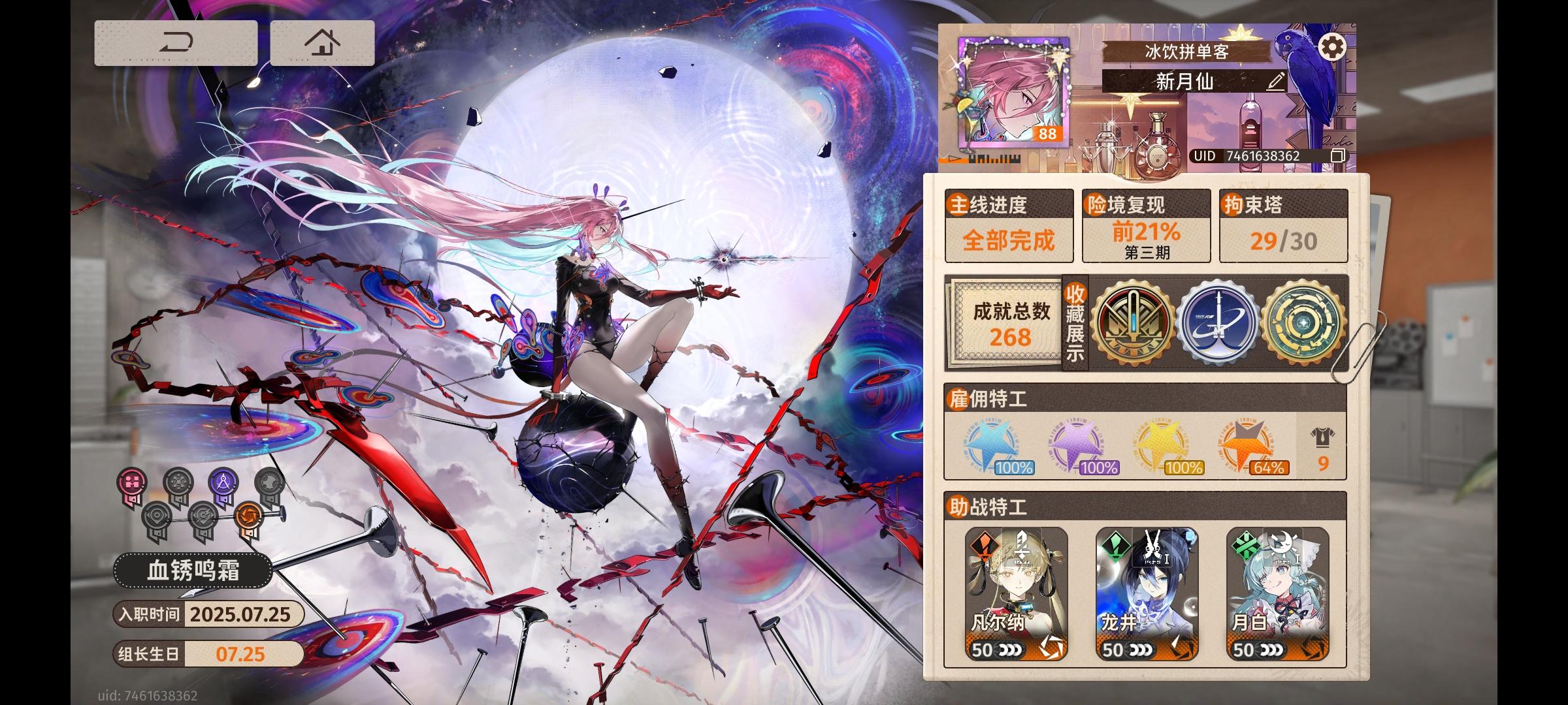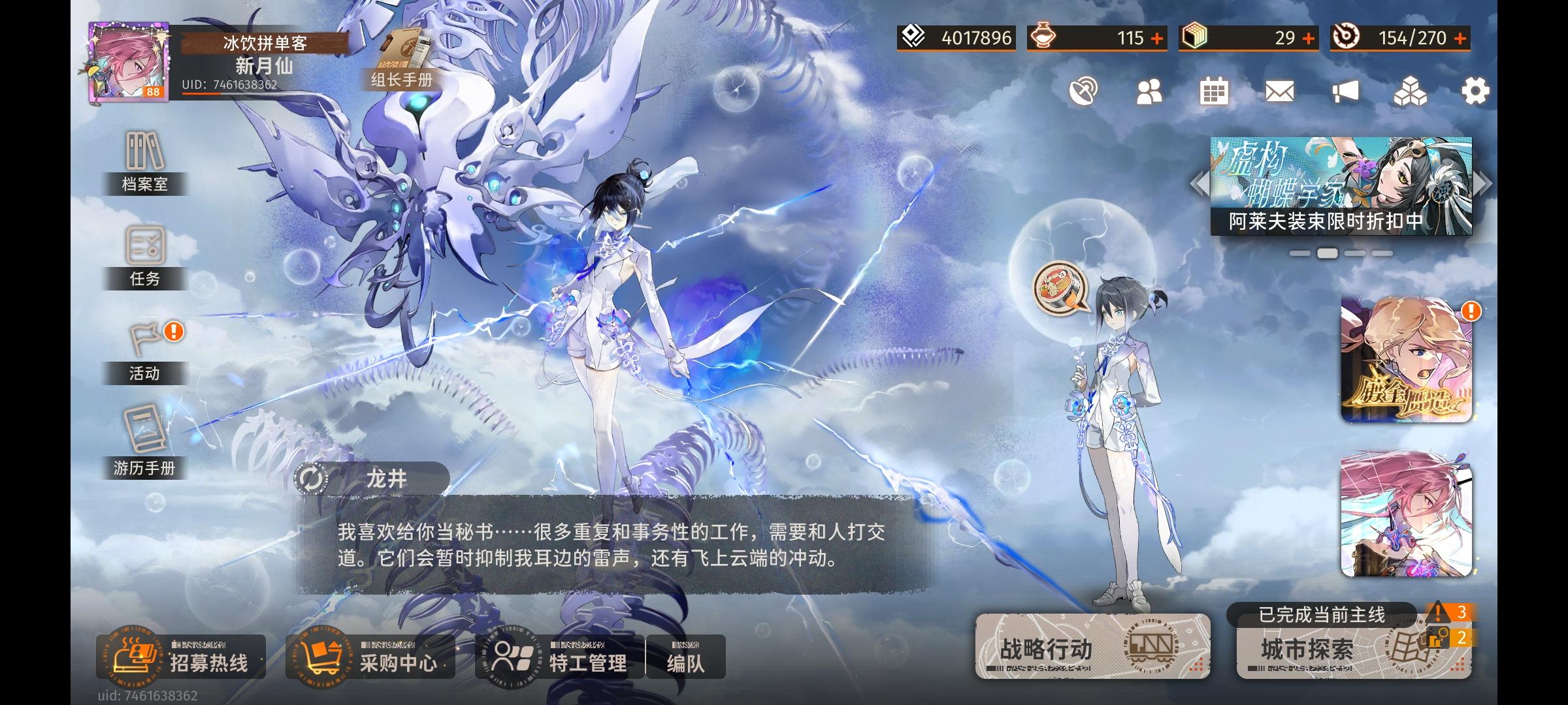 纪念一下吧。哎,一星期前的延期版本更新就已有所预料,只是没想到告别来的这么快。就在刚过去的一周年里凡尔纳我真的觉得不赖(各种意义上)也是用230抽直接满门,开始期待新年版本,但天意难测啊牢月。开幕电话间接起一通电话,从此开始身为组长的旅途,一路闯过南廷,吉拉托,雅南。也算是好聚好散吧,虽然这款游戏玩的时间并不长,但得益于独特的美术,剧情与剧情配音和动画效果,我个人非常喜欢这款游戏,印象真的