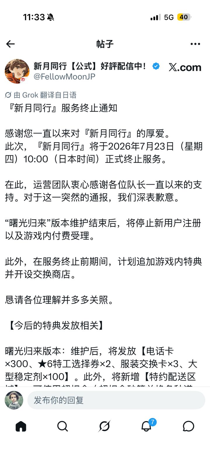 没有陪伴服❗《新月同行》要停服了