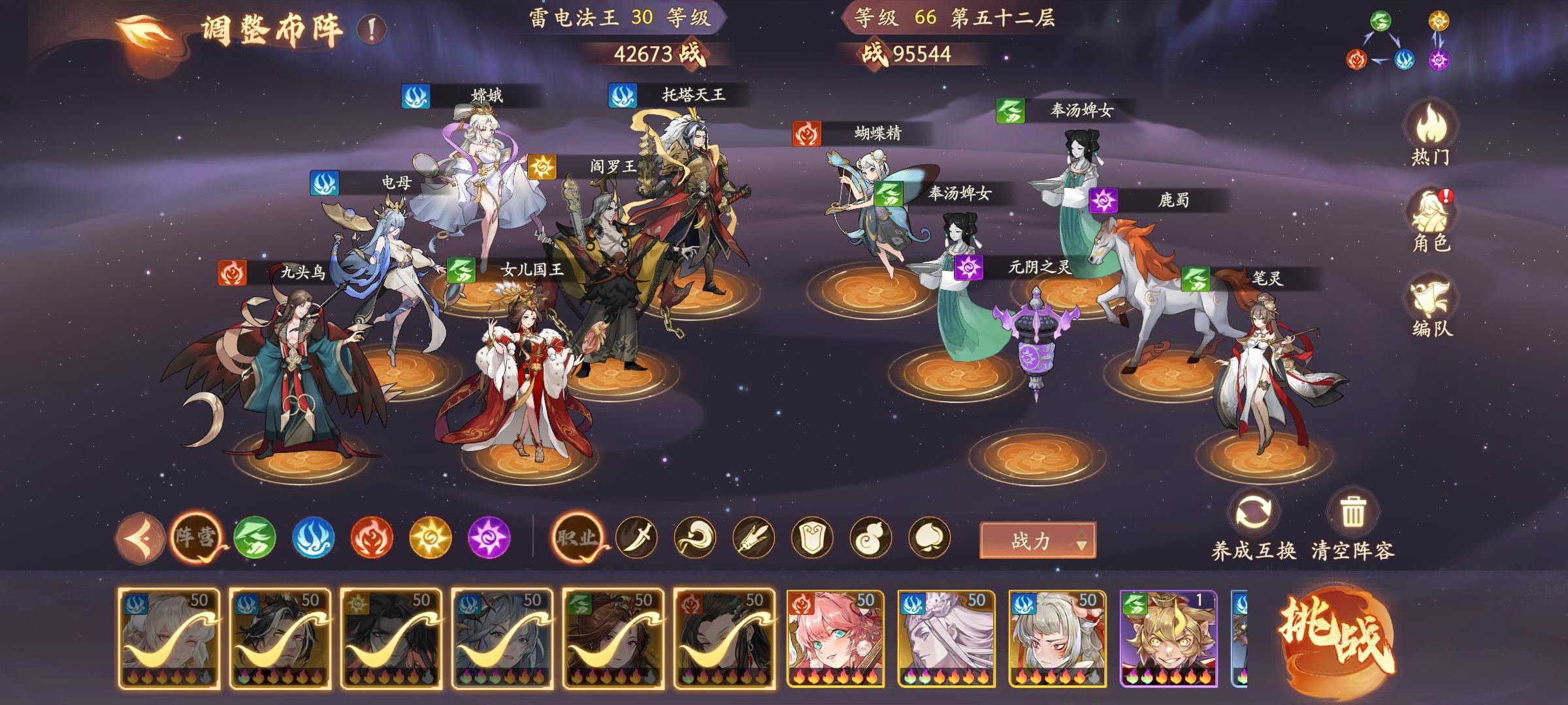 六巫,两公主(侯卿,降臣,蚩笠,蚩离,倾城,倾国)大贺枫,孟婆,李克用,巴戈四选二,哪个星高上哪个,过度很平滑,暗养李存礼,后期有巫玉后,下其中一个巫,李存礼放候补位了(八号位), 倾城因为是刺客,会直接跳对方后排。大概率第一个死,老六会直接上场在倾城死的位置,直接切后排,目前具体站位看图,前期侯卿主c,蚩笠副c,第三个养倾国,我的倾国一个人能顶住对面气宗七个人