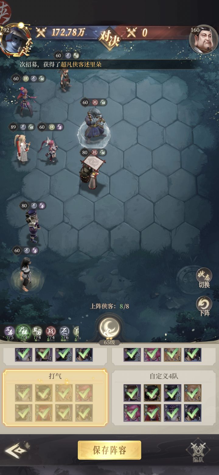 之前看很多朋友都在说打地宫,说是主力将容易死亡,退出去换装备浪费时间大家可以看看这套阵容,战力差不多的情况基本无伤打地宫李存礼+天师父子+袁天罡+慧明+三辅助李存礼本身技能伤害高加上四气羁绊输出可以吊炸天,慧明选第二绝学能给身边队友套盾+回血很强势(带四阶法袍的套盾的装备)站老六边上。天师父子是挂件,一是凑四气羁绊,二是天师羁绊的威亚。袁天罡也是挂件,一凑气羁绊,二金刚羁绊,三全屏输出打