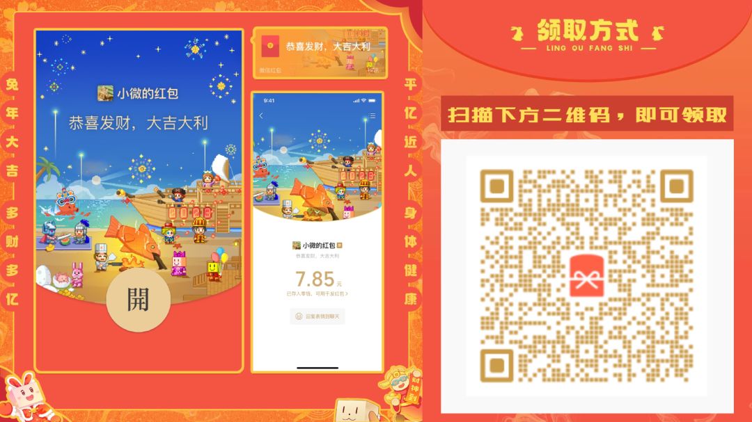 开工大吉大利,新年限定红包封面大放送!开罗运营小队给大家贴心的准备了开工红包封面,祝大家红红火火,好运upup! 即日起至2月4日,扫描图片二维码,即可领取【开罗游戏新春微信红包封面】哦~ 数量有限,先到先得! 还可以关注微信公众号【开罗游戏kairosoft】,更多游戏资讯,活动福利等你来~ 〓活动时间〓 2023年1月29日-2023年2月4日 〓参与方式〓 扫描下方图片二维码,即可领取 〓活