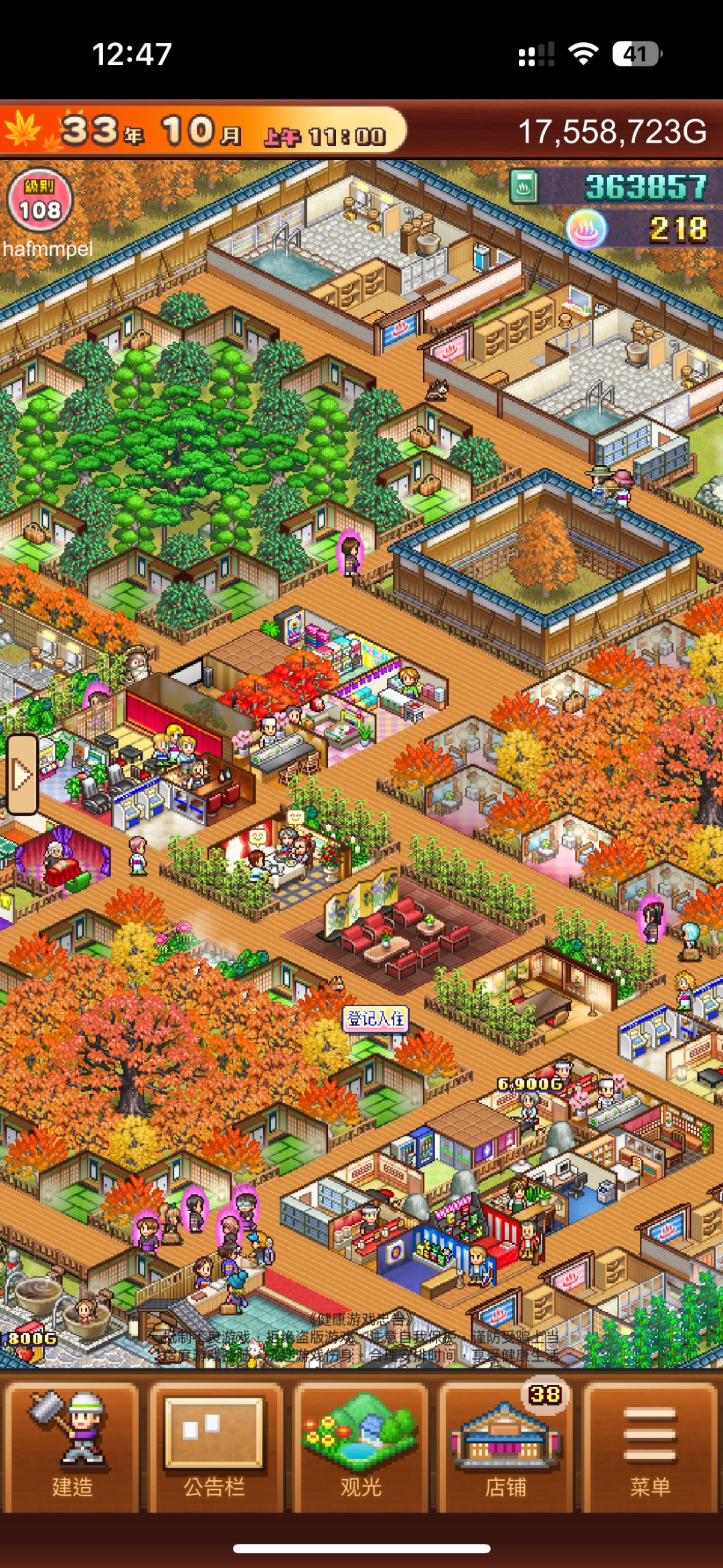 速通后意识到了一些事 1.通过sl抽奖。员工加等级。如果员工本就8级了,再抽到一次直接9级。 2.困扰你的限制因素到底是什么。假设是研究点和金钱。 研究点的主要给点我主要来自于温泉。一开始放露天温泉的时候,就用钻石→奖牌→收费种子。把露天温泉的研究点拉满。 其实人气我也拉满了。 如果是金币不够的话。也是一样的道理,用人气种子拉满古典客房。只建一种客房。 等旅店里出了atm再把古典的收费拉满。拉到不