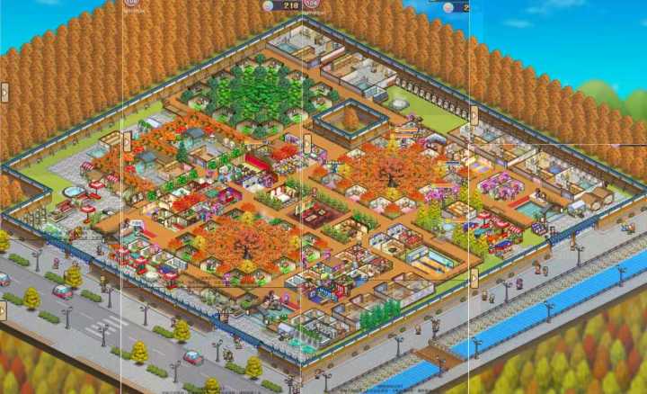 借鉴了小红书上大佬的布局,我稍微改了改。用这个布局可以从一开始用到最后,不用拆来拆去的。初始大门不用拆,温泉也都不用拆,需要注意的是刚开始的时候客房可以挨着建,等地图扩充之后再建中间的树。两个露天温泉按照这个图附近的设施建,功效是满的。奖牌一开始比较紧吧,全用来买提升人气的种子,设施先用种子提到40再用道具。后期用歪罗奖品攒够了再买千年松(150)千年樱(100)和5棵五针松。其他的树都是在商