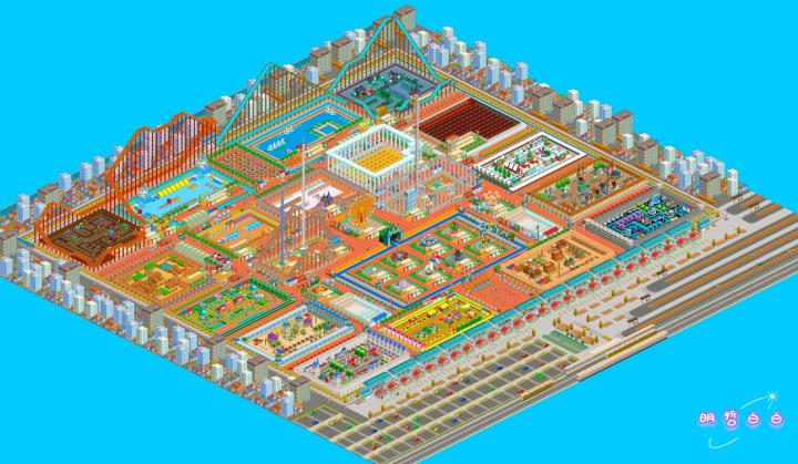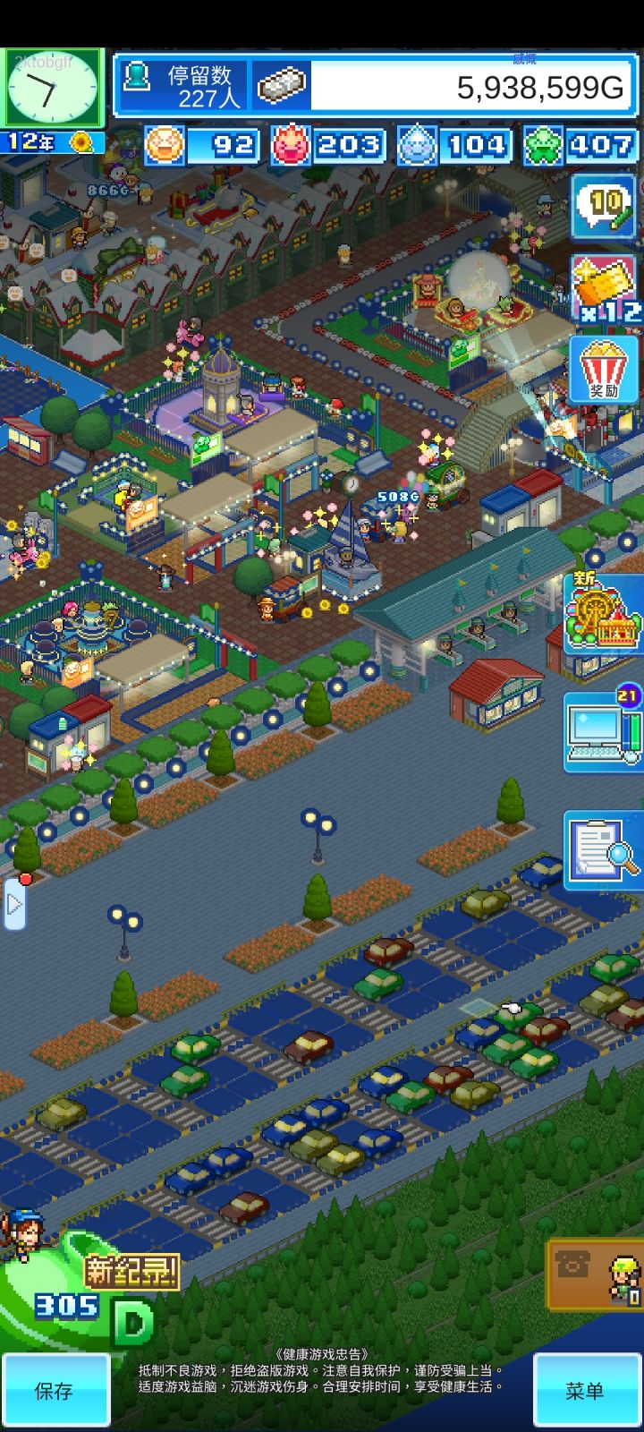 整体发挥很稳定的开罗游戏,不得不说开罗确实是小品经营模拟的神。设施慢慢丰富起来后,仅仅只是看着小人在里面玩都会很开心,季节撒花更是添加了游乐园的热闹氛围。美中不足的是:一、设施调整位置不能与原位置重叠。二、翻译错误,游戏中将气球翻译为了风扇。三、图像bug,灯光带透明度部分的图层全部变成了蓝色,一开始还没注意到,仔细一看,基本上全部灯光图层都有这个bug。