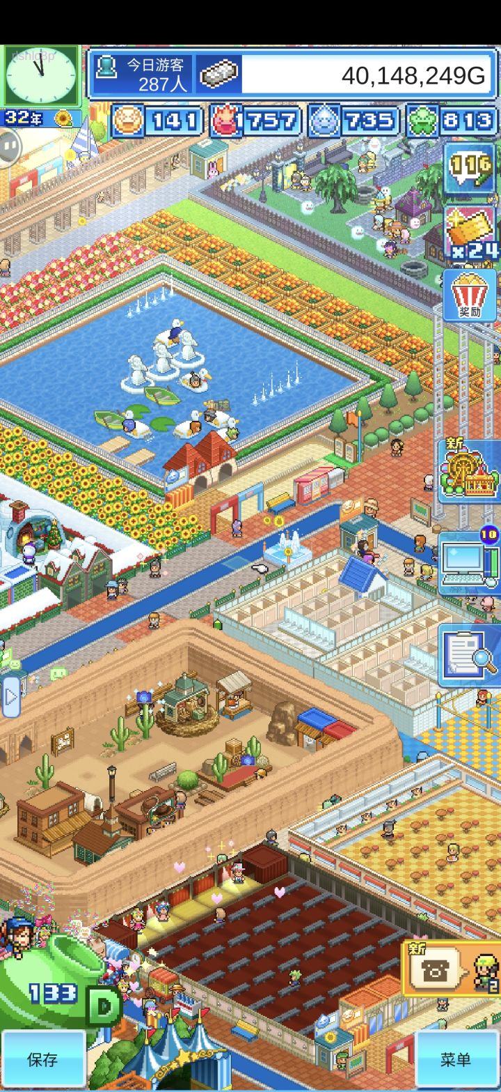 游乐设施:摩天轮是最好的游戏设备,剧院和巡游是特殊设备,都尽可能的提高属性。