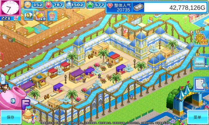 最近宅家玩了玩“游乐园梦物语”,替我释放一下自由的灵魂。感谢大佬“冰杨梅加工厂”的《【开罗游乐园梦物语】可以算是非常全面的攻略》,帮我解决了不少疑问。https://www.bilibili.com/read/cv14467621?from=search&spm_id_from=333.337.0.0总体来说玩法和“夏日水上乐园”很接近,不过地图面积太大,横88纵74,给我的自由过了火,让我
