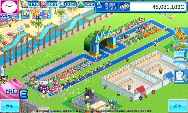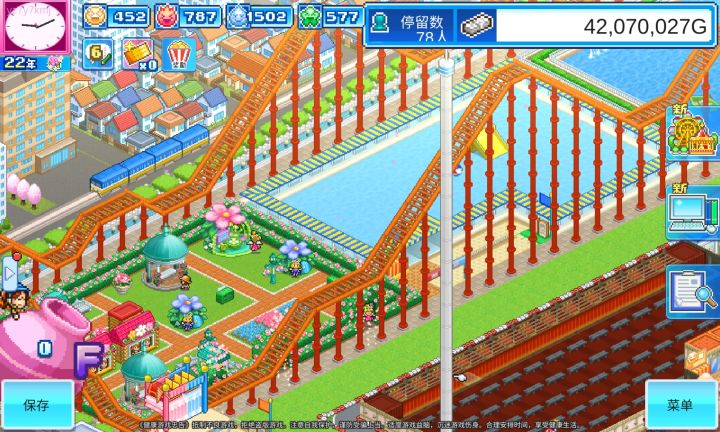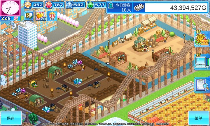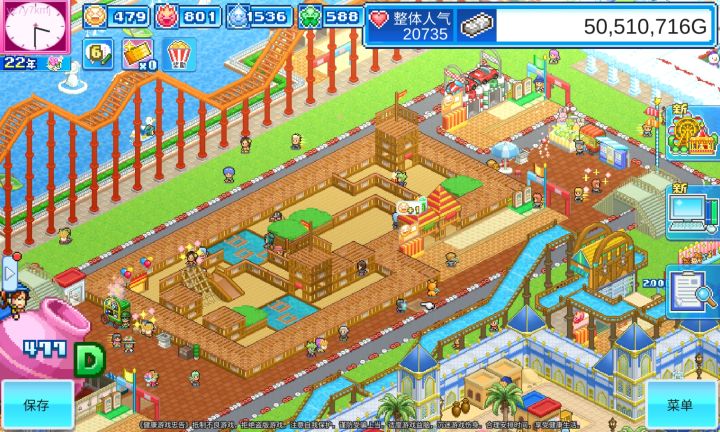 最近宅家玩了玩“游乐园梦物语”,替我释放一下自由的灵魂。感谢大佬“冰杨梅加工厂”的《【开罗游乐园梦物语】可以算是非常全面的攻略》,帮我解决了不少疑问。https://www.bilibili.com/read/cv14467621?from=search&spm_id_from=333.337.0.0总体来说玩法和“夏日水上乐园”很接近,不过地图面积太大,横88纵74,给我的自由过了火,让我