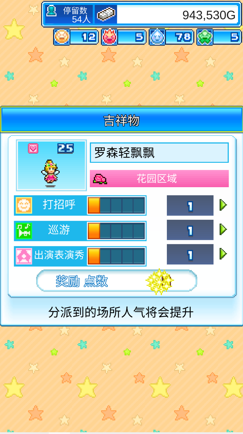 这个界面是《游乐园梦物语》的核心运营界面,可分为数据显示区、功能操作区、场景设施区三部分,各区域的功能与数据解析如下: 一、数据显示区(顶部) 这是游乐园的核心运营数据,反映当前经营状态: 1.基础资源: - 「整体人气 665」:游乐园当前的吸引力指数,人气越高,游客数量越多; - 「908,700G」:游戏内通用货币(金币),用于建造/升级设施、购买装饰; 2.特殊资源(人气右侧的图标): -