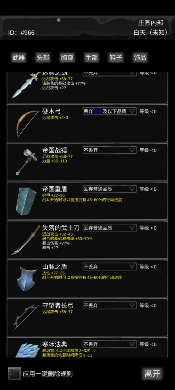 经过多次尝试,总结出一套自认为完美的开局,肝度适中,保证一天内杀龙进城,步骤如下:首先,SL刷出【SS法师】再兑换码开局,经验全给法师然后调整物品掉落:武器除了双匕,其他的全部扔掉。所有人在专武没入手前,全部使用双手匕。防具,圣徒以上的全部丢弃稀有,守备官以下的全部丢弃精良饰品,暂时全要迷雾森林:善良的把矮人带回城,因为每次回庄园都自动存档,不方便SL神器属性,带回去杀属性高就继续游戏