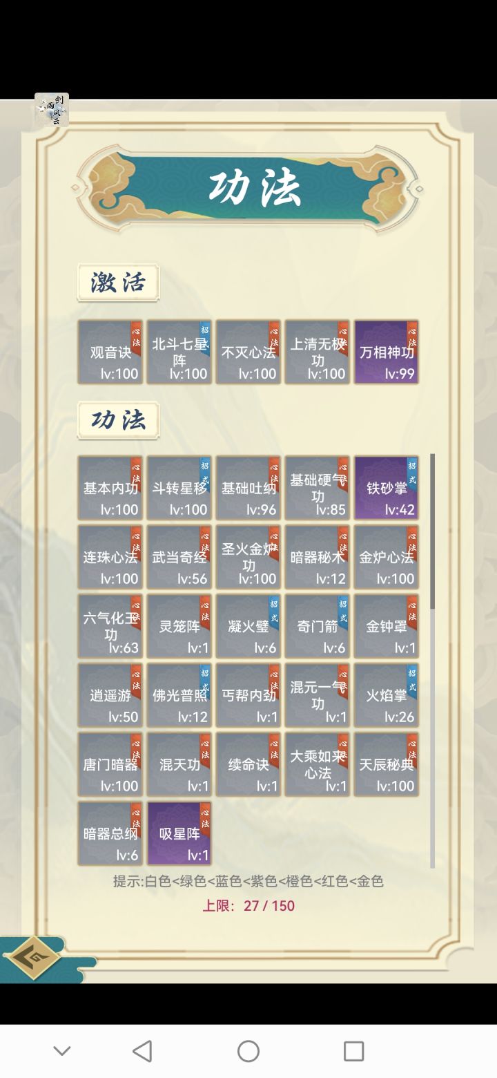 3.技能装备上基本内功,斗转星移,连珠心法,圣火金炉,金炉心法。唐门暗器暂时没必要升级,前期收益不如基本内功。