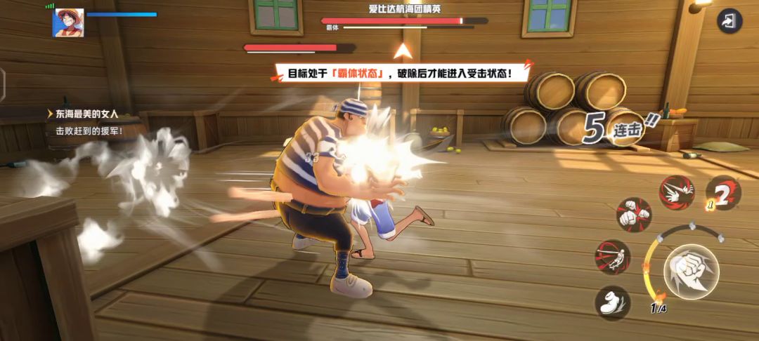 手感上比隔壁好很多,闪避有cd一时没适应,有个小细节路飞1技能后摇空中的时候可以在空中接2和3技能。有个很致命的地方就是抖屏特效使用过度了,很晃眼