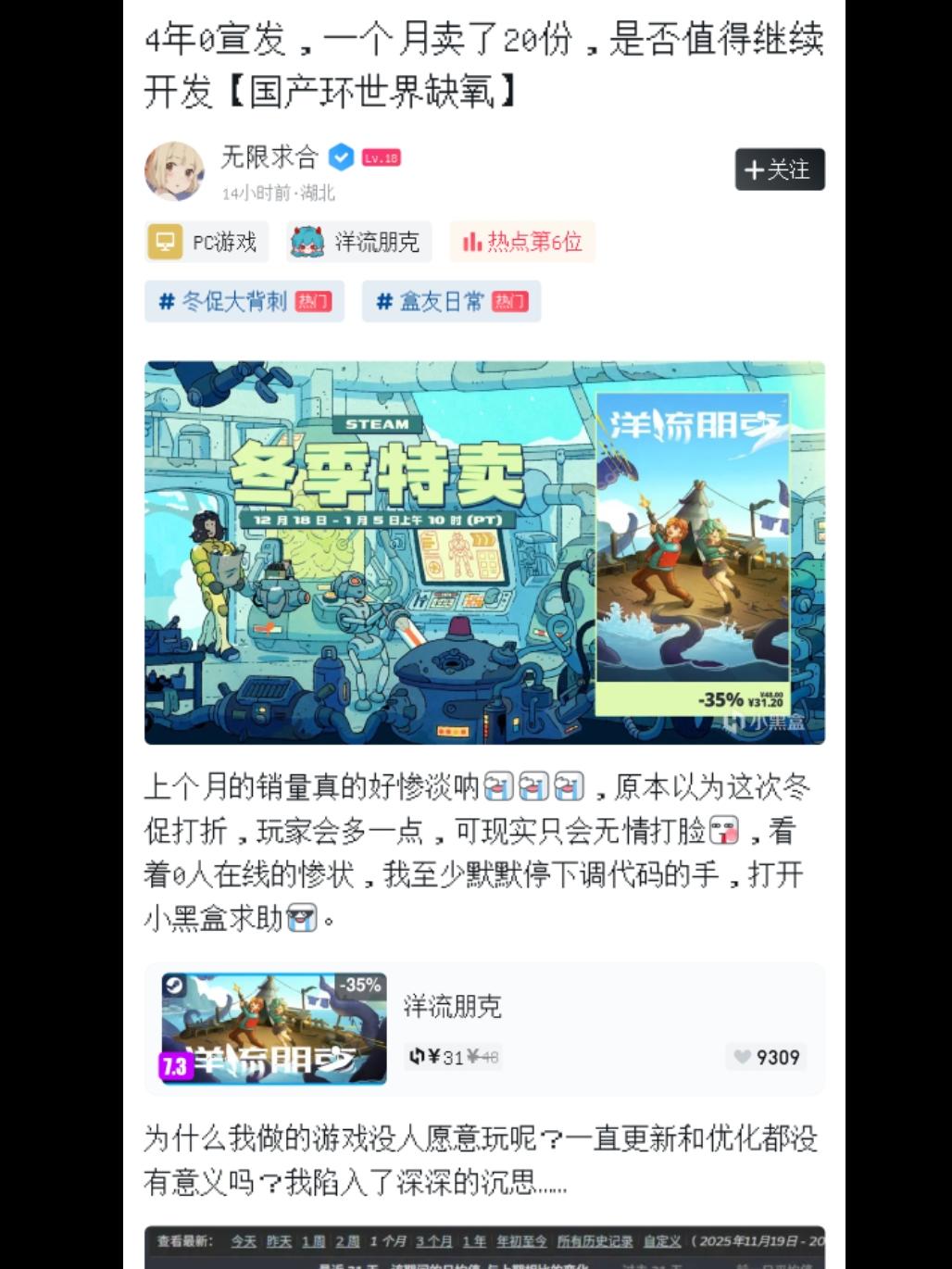 只是有点担心,不是ky,因为玩法也是含环世界和缺氧,但没什么宣发的同类型的销量真的糟糕,tip:我没玩过也不推荐玩提到的这个