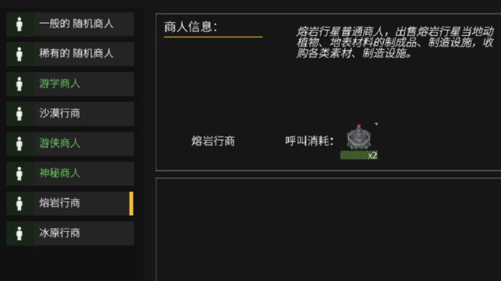 目前只有两名商人会售卖基因模组,第一个是征途神秘商人,第二个是融构会员贸易员,他们的好感是冷漠的时候购买会额外增加20%单价,升到相识就会减20%我记得隔壁那帮收购材料的,我已经加好感加到友好了,待会儿我去看一下子他那边减多少购买单价?购买的东西会直接掉落在交易站旁边,然后之后人物自己或者是动物会去捡,还有的物品除了最开始的那一两个大部分都是需要后续好感度才能购买的,好感度可以通过多次交易和做太空
