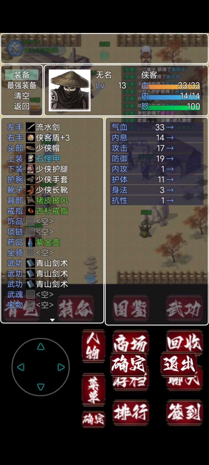 先是玩了单机版,后来下载了网络版,功能丰富强大,金币装备挂机产出,根据适合的等级装备去相应的地图可以无伤挂机,界面操作简单易懂,轻松上手,挂机的时候做点别的事情,工作娱乐两不误,还是挺有趣的,游戏还有很多不完善的地方,以及还有很大的开发空间,支持作者,感谢作者,希望继续努力为我们提供一个实现武侠梦的平台😄😄😄😘😘