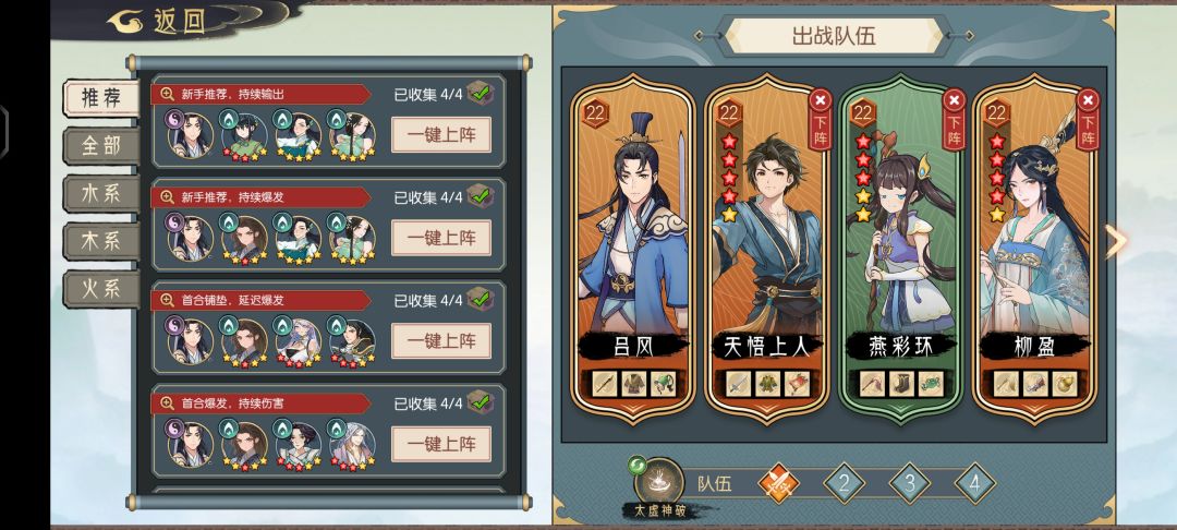 吕风带玄天幻妙决、装备全法力值装备————慕容月、天悟:龙鸣断生剑+汐威百琅衣————迟青云武器:起潮破军+汐浪当山臂————首饰有金威能就带金威能,没有带紫色转水灵气+首回合+1水灵气,再带一个破甲首饰(火蛟佩或者乾坤叱妖镯)。首回合打法复制天悟生水技能,尽量多生水灵气,然后再放加天悟的加威能,最后放慕容月的技能。2-6复制迟青云的+2水技能,也是一样放技能,全程磕法力丹 ps:2月19日,用了
